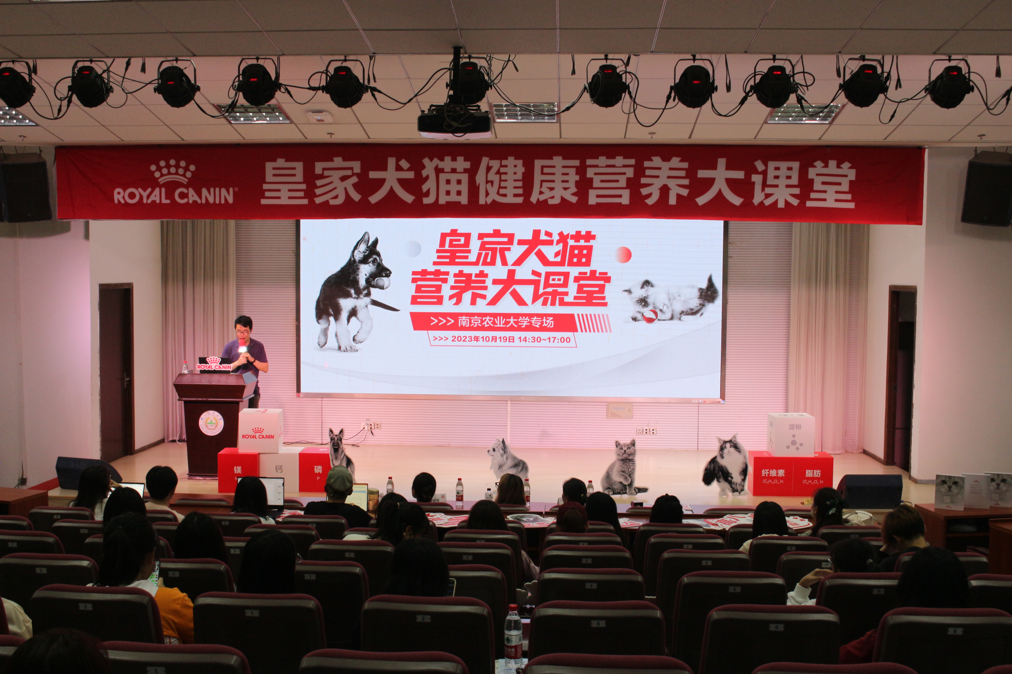 10月19日下午14:30,2023年皇家犬猫营养大课堂南农行在教四楼报告厅举行。到场嘉宾有皇家宠物食品中国区代表、beat365唯一官方网站临床兽医系陈凯文副教授和辅导员李欣欣。皇家宠物食品中国区科技交流部王芳与皇家宠物食品中国区电商渠道高级经理徐斯旸共同主讲。皇家宠物食品中国区代表与beat365唯一官方网站、动物科技学院等学生六十余人到场参与。