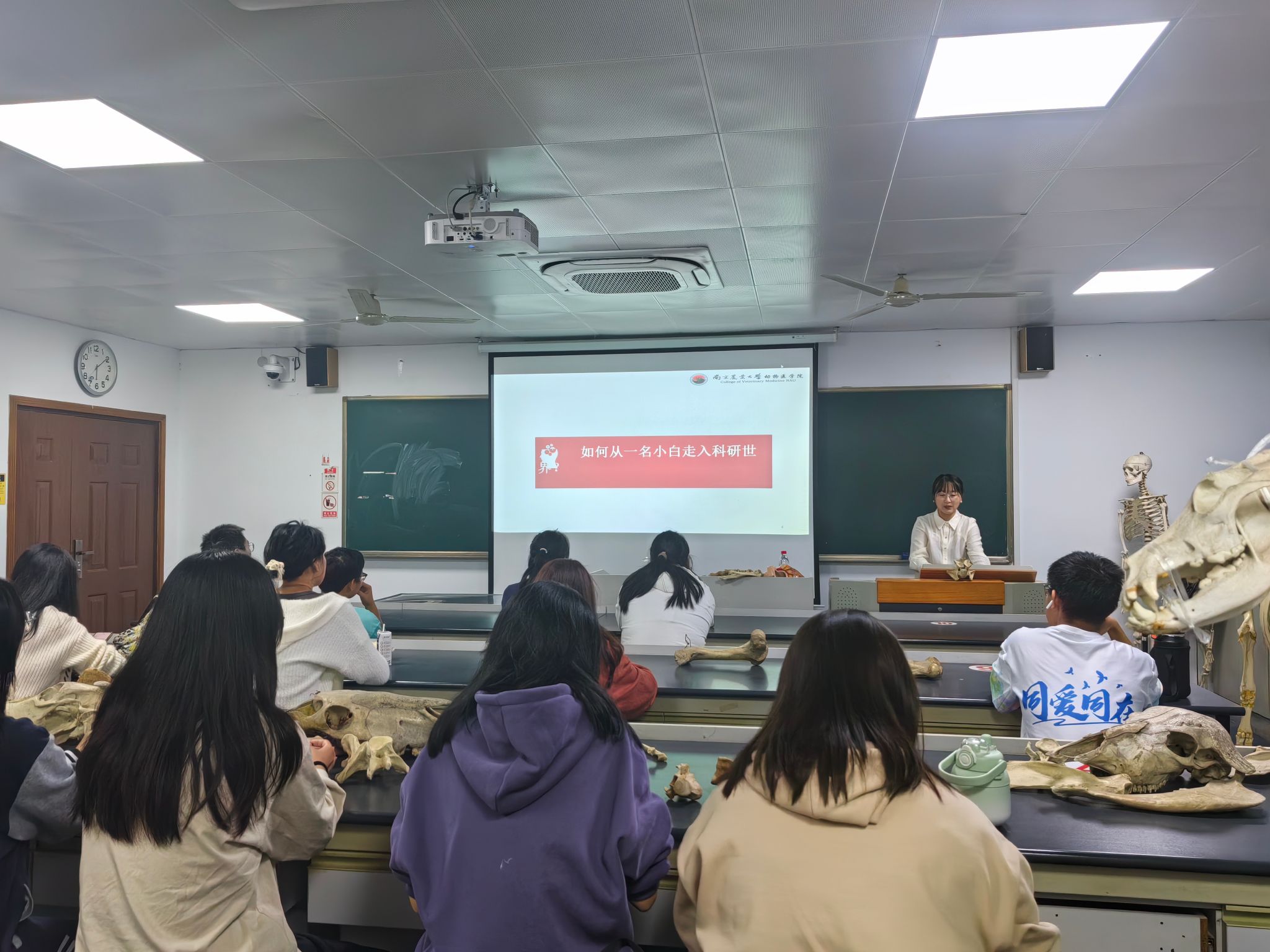 雷老师从五个方面入手,向我们讲解了大一新生应该如何在好好学习的同时提升思想觉悟。学习上,要巩固专业思想、培养兽医情怀,对专业发展前景有充分的了解,树立坚定的专业自信,认真学习专业知识,上课认真听讲、做好笔记,课后及时复习,不懂的问题要及时请教老师和同学;思想上,要始终坚持中国共产党的领导,积极向党组织靠拢,以党员的高标准要求自己,紧跟党的步伐,心中有党,一心向党;生活上,要广泛培养自己的兴趣爱好,做到德智体美全面发展,发扬自己的长处,积极在各个领域展现个人风采。