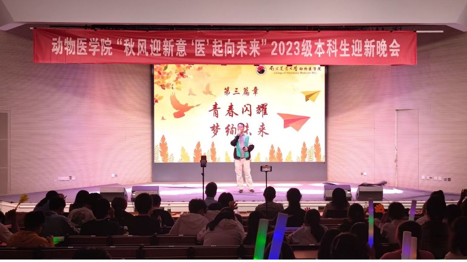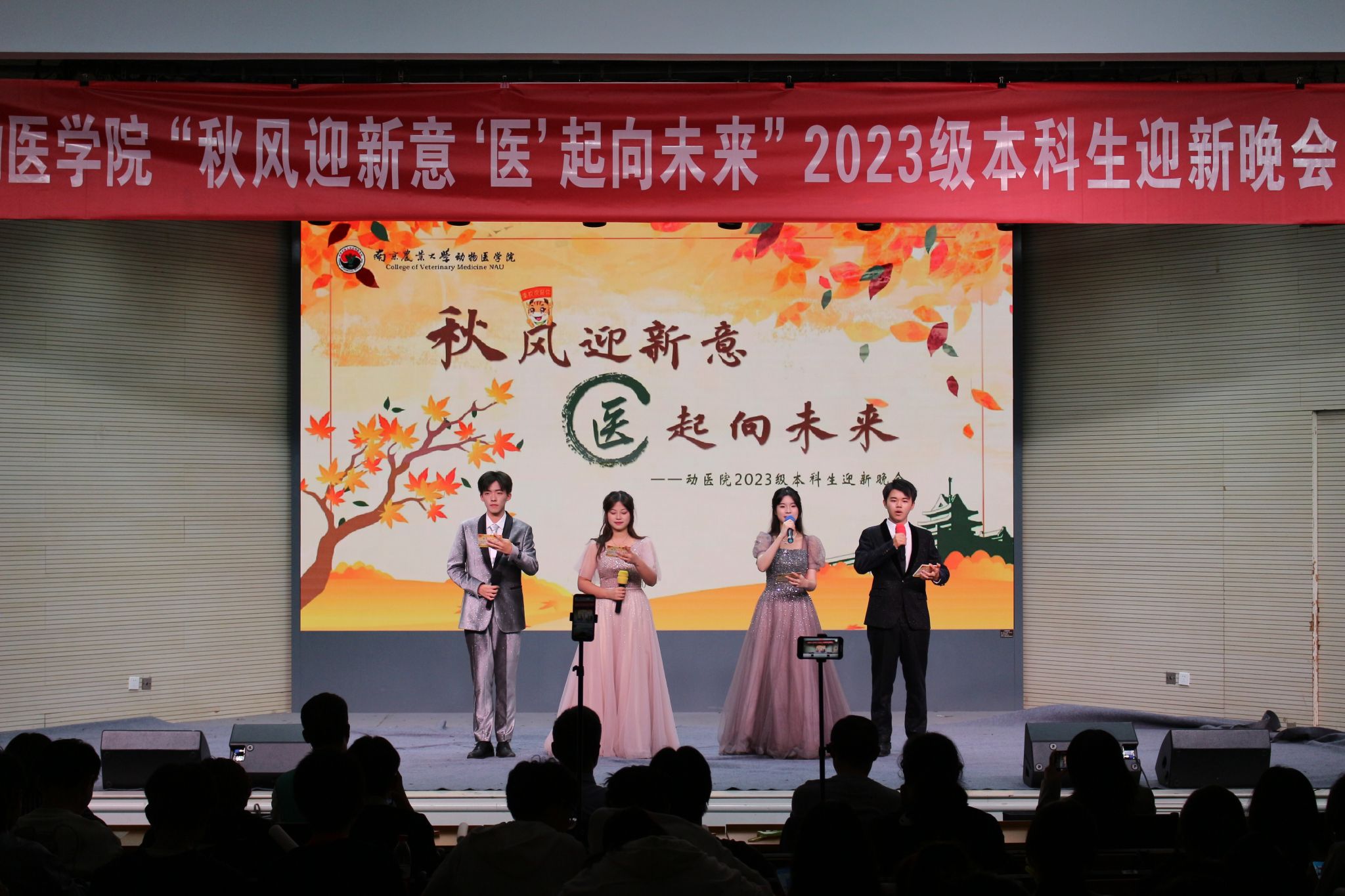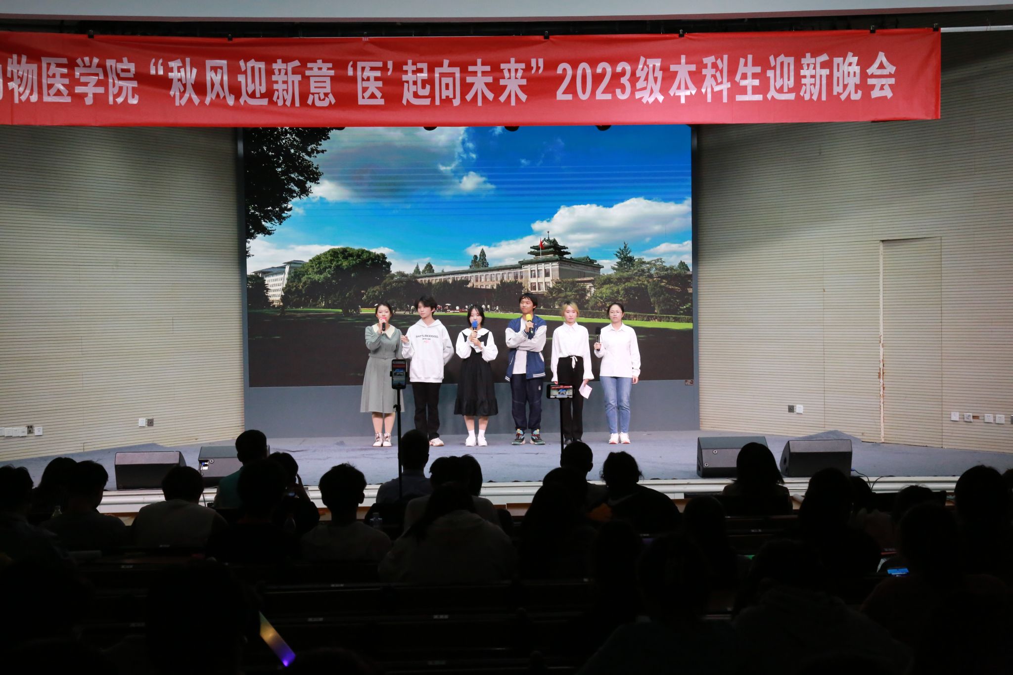 10月28日晚,beat365唯一官方网站2023年“秋风迎新意,‘医’起向未来”迎新晚会在大学生活动中心举行。出席本场晚会的嘉宾有院党委副书记李云锋,动医类2304班班主任李桥、动医类2305班班主任徐立新,教师代表武毅以及辅导员金洁南、徐刚、李欣欣、安琪、田文秀。