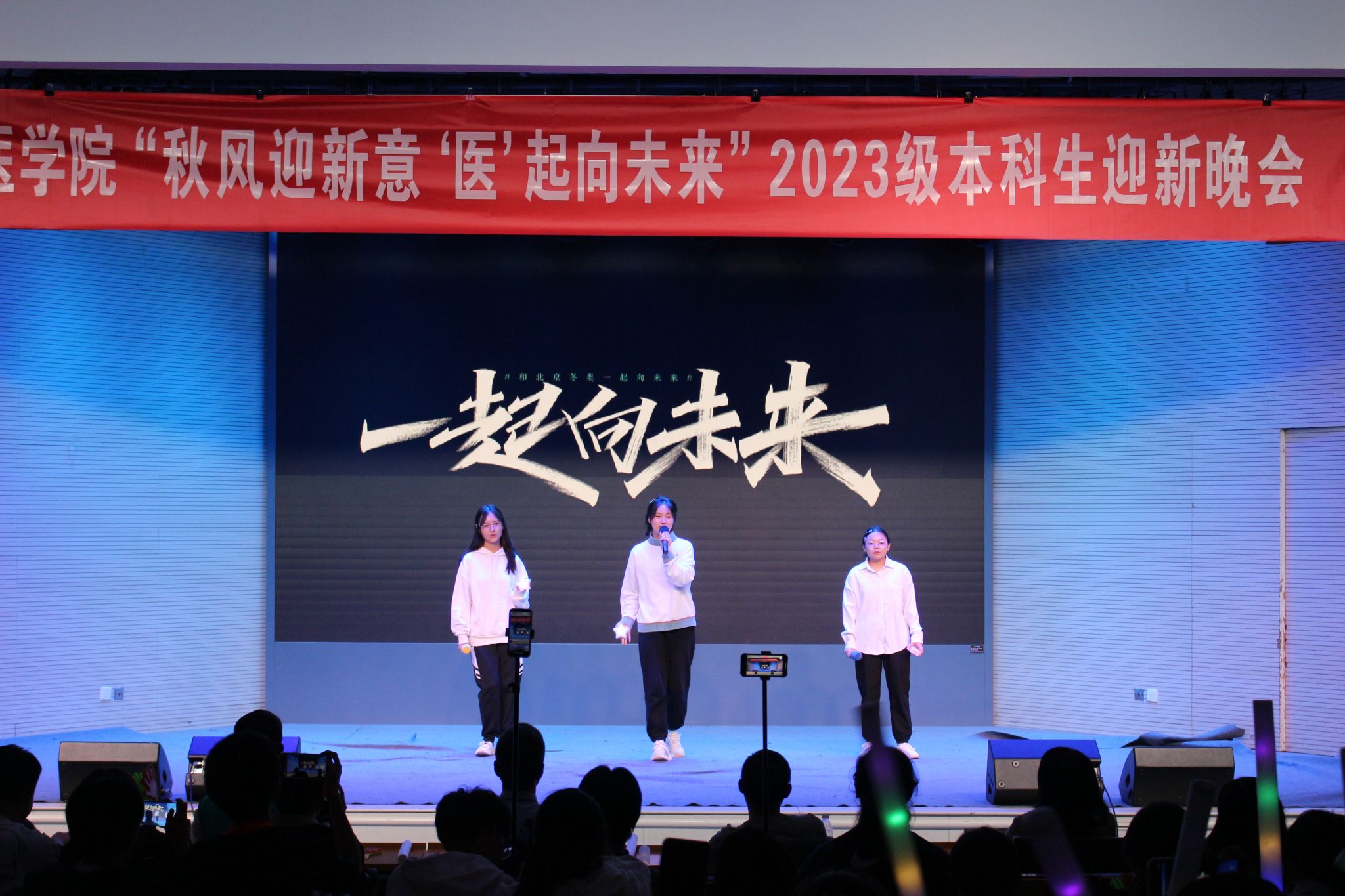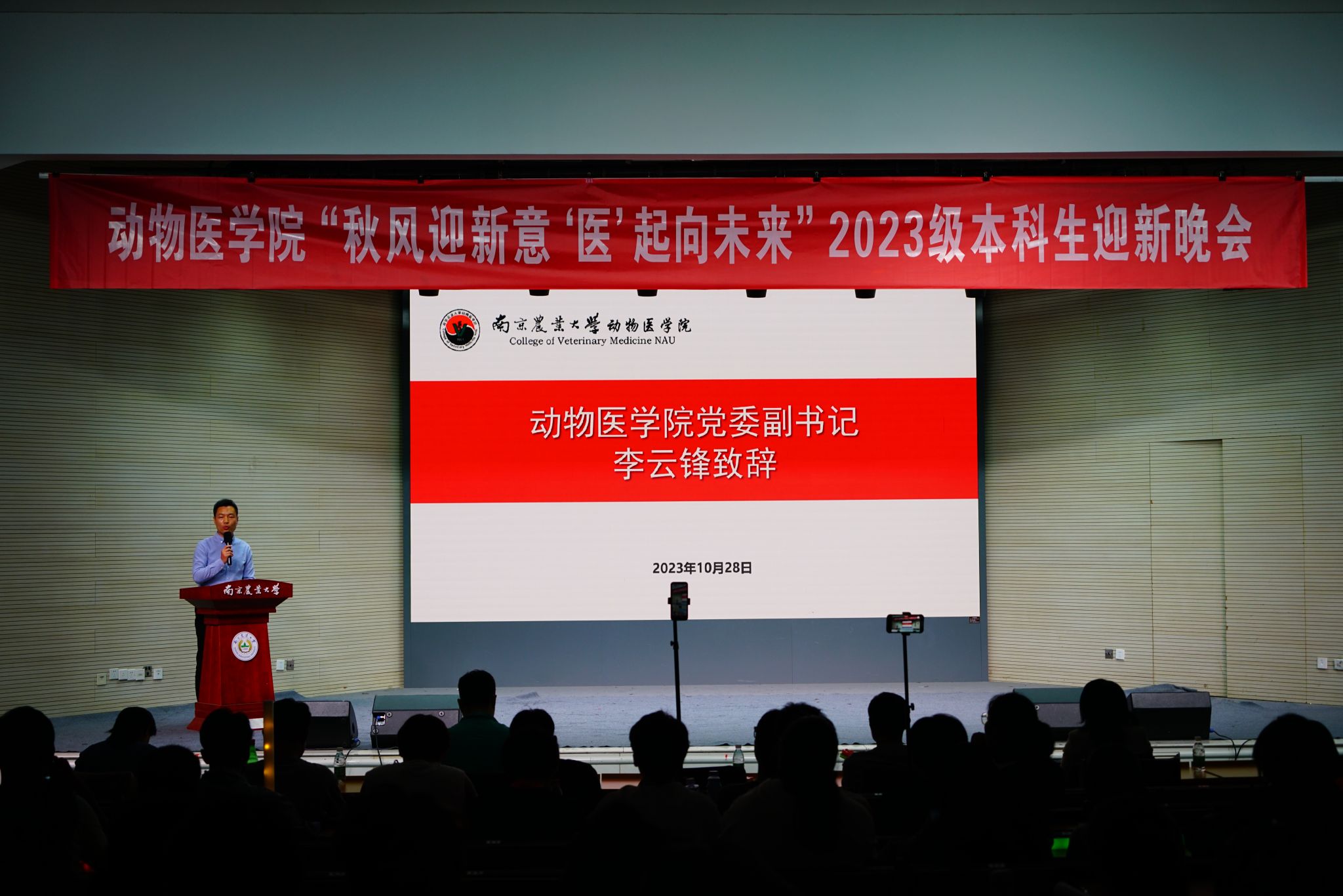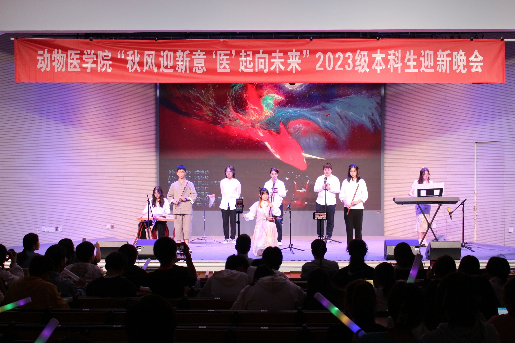 10月28日晚,beat365唯一官方网站2023年“秋风迎新意,‘医’起向未来”迎新晚会在大学生活动中心举行。出席本场晚会的嘉宾有院党委副书记李云锋,动医类2304班班主任李桥、动医类2305班班主任徐立新,教师代表武毅以及辅导员金洁南、徐刚、李欣欣、安琪、田文秀。