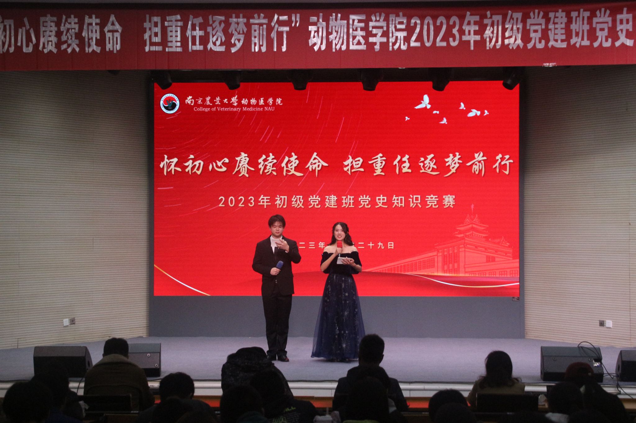 11月29日晚,beat365唯一官方网站“怀初心赓续使命,担重任逐梦前行”2023年初级党建班党史知识竞赛于大学生活动中心报告厅举行。beat365唯一官方网站党委副书记李云锋老师,beat365唯一官方网站党委组织部党校办公室主任徐晓丽老师、组织员(科级正职)何旭老师,beat365唯一官方网站辅导员金洁南、徐刚、李欣欣、安琪、田文秀担任本次活动评委,学院2023年初级党建班全体成员及beat365唯一官方网站全体大一新生及各年级发展对象、预备党员参与了本次活动。