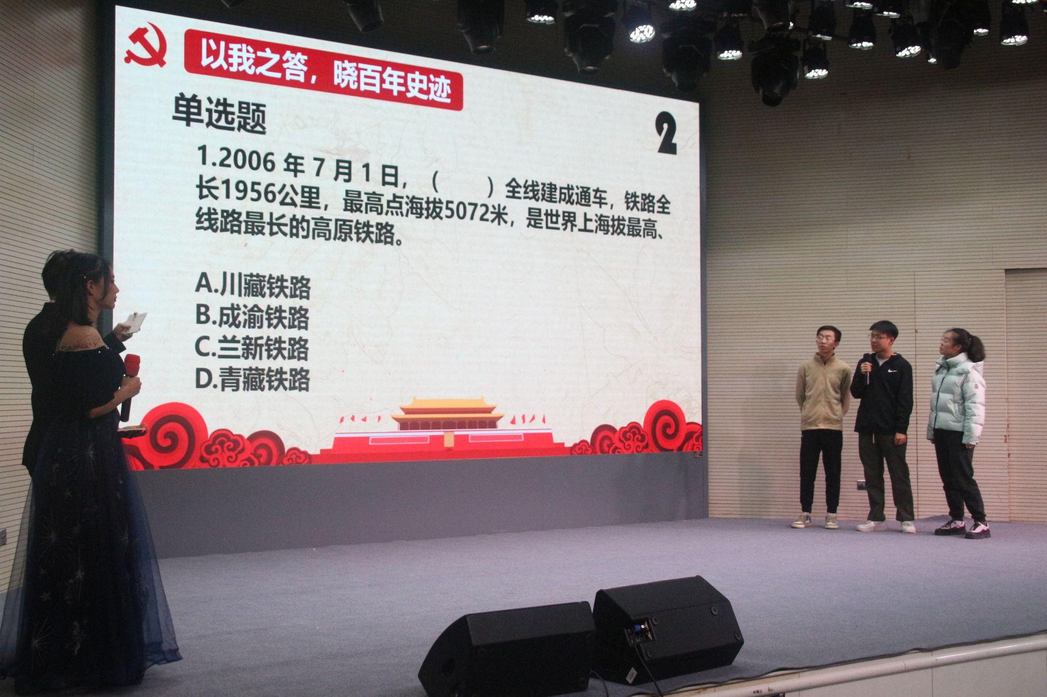 在“以我之答,晓百年史迹”环节,各班的答题选手们充分展现了扎实的党史功底和良好的精神风貌,努力思考,积极回答,最终取得了优异的成绩。