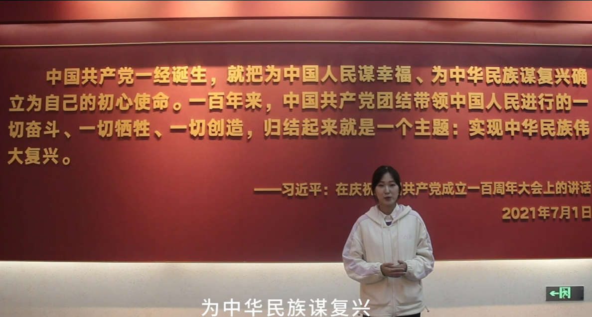 在“以我之语,话百年征程”环节中,来自各班的八位代表以所叙述的故事时间为顺序,聚焦建党百年、讲述党史故事。各选手精彩的演讲让观众仿若置身当时,穿越时间、共忆往昔峥嵘岁月。