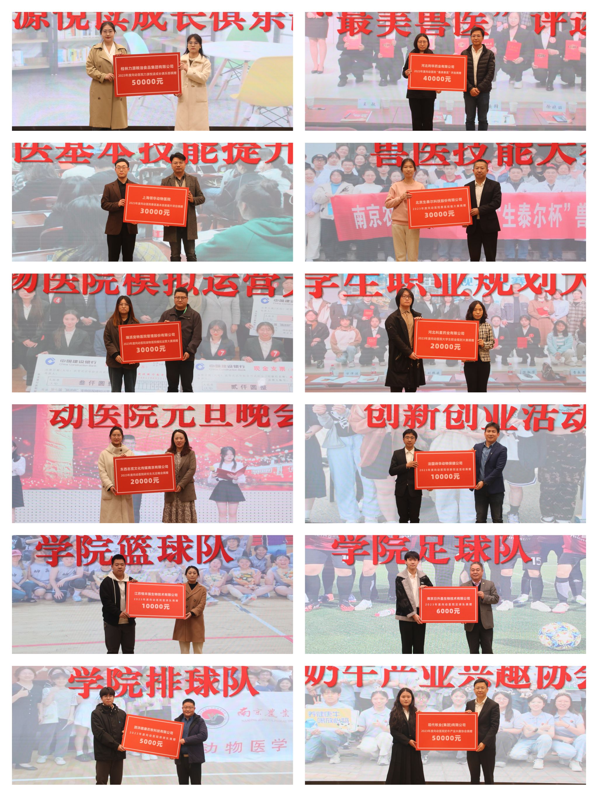 2023年,beat365唯一官方网站院企合作单位12家,累计收到捐赠金额20余万元,用于学生的思想政治教育、科技文体活动、专业能力竞赛和先进典型表彰中。会上举行了“学生工作赞助单位捐赠仪式”,各捐赠单位代表上台与受赠学生代表合影留念。