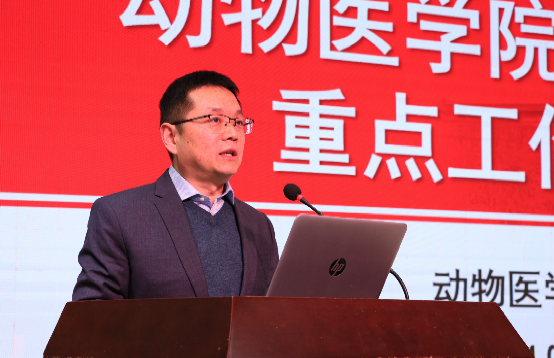 副院长(主持工作)平继辉以“凝人心、找差距、谋发展、谱新篇!”为题,回顾了2023年学院十大亮点工作,围绕学院2024年目标管理考核目标,对本科教学评估、重点平台建设、重大学术活动、与FAO的国际合作等重点工作进行了动员部署。他从师资队伍年龄分布、教学团队工作量对照、近五年引进人才情况以及国内兄弟学院领军人才对比等方面,分析了学院目前存在的师资年龄断档、领军人才缺乏和后备人才不足的问题,并针对性的提出了七条工作设想。他指出,学院人才工作的突破需要全院师生共同努力,攻坚克难!希望学院全体教职工多提宝贵意见,多多监督,多多批评!学院新领导班子将以团结的氛围、饱满的热情、积极的心态为全院师生做好服务!