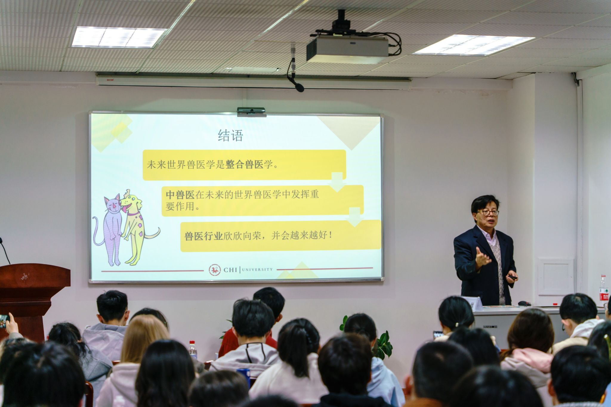 石达友则以Chi University的发展现状和未来方向导入,深入浅出介绍了Chi University的核心理念,勉励同学们努力学习,增强专业技能,明确自身发展方向,为将来我国乃至世界兽医行业发展增砖加瓦。