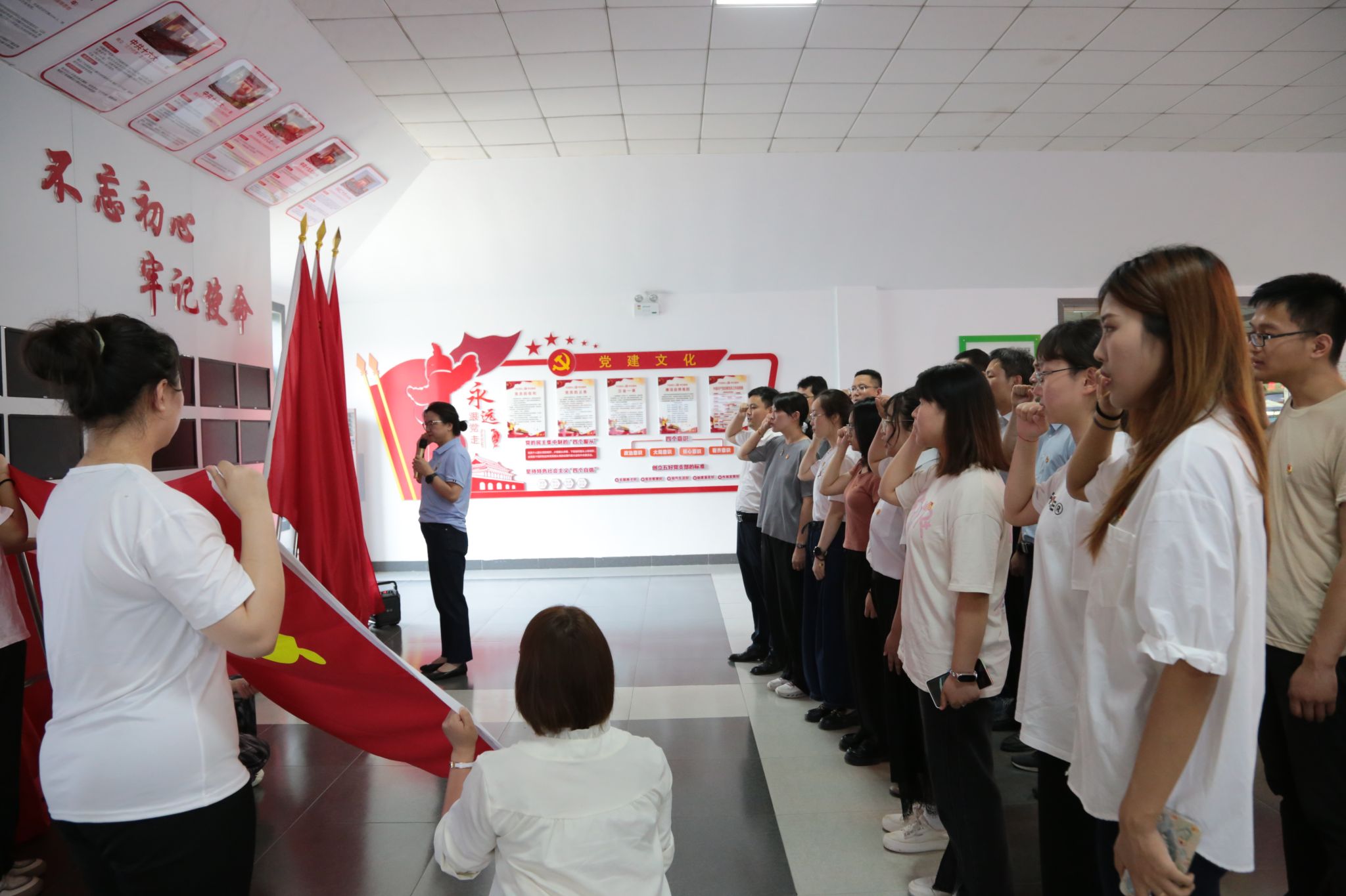 现场,姜岩带领学院师生党员重温了入党誓词,师生党员面向党旗,庄严宣誓,在铮铮誓言中重温入党初心,坚定理想信念,牢记职责使命。