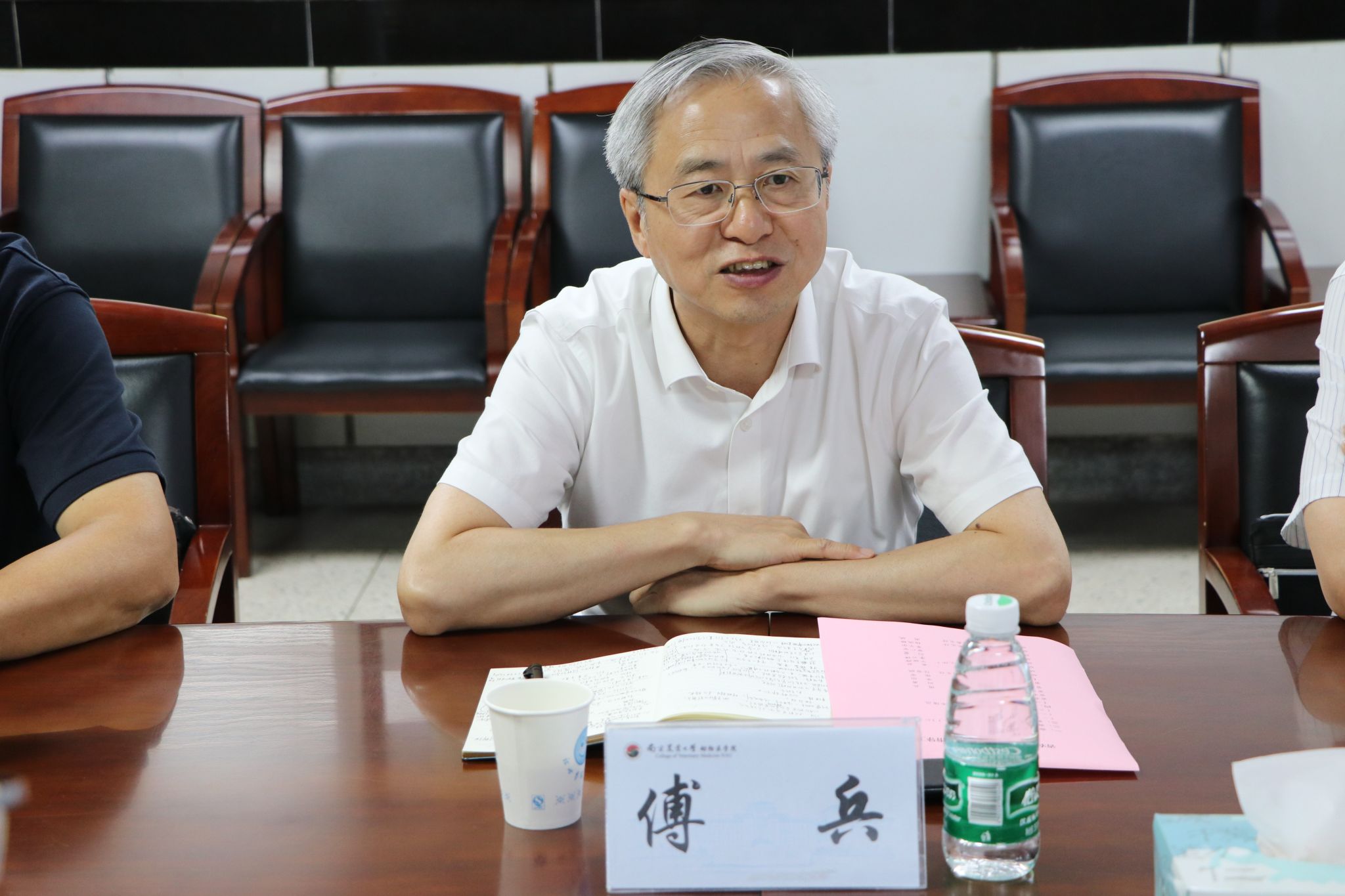 傅兵对学院的工作成效给予充分肯定,他指出,南农动医历史底蕴深厚,学科实力雄厚,为江苏乃至全国畜牧兽医事业发展做出了积极而重要的贡献。他希望学院继续发挥科技和人才优势,聚焦重大动物疫病防控、人畜共患病及食品安全等重点领域,精准发力,力争再出更多成果。他表示将聚焦本次调研工作中反映出的堵点痛点问题,落实常态化调研机制,加强沟通联系,积极提供支持帮助,为校地协力高质量发展畜牧兽医事业构筑坚实基础。