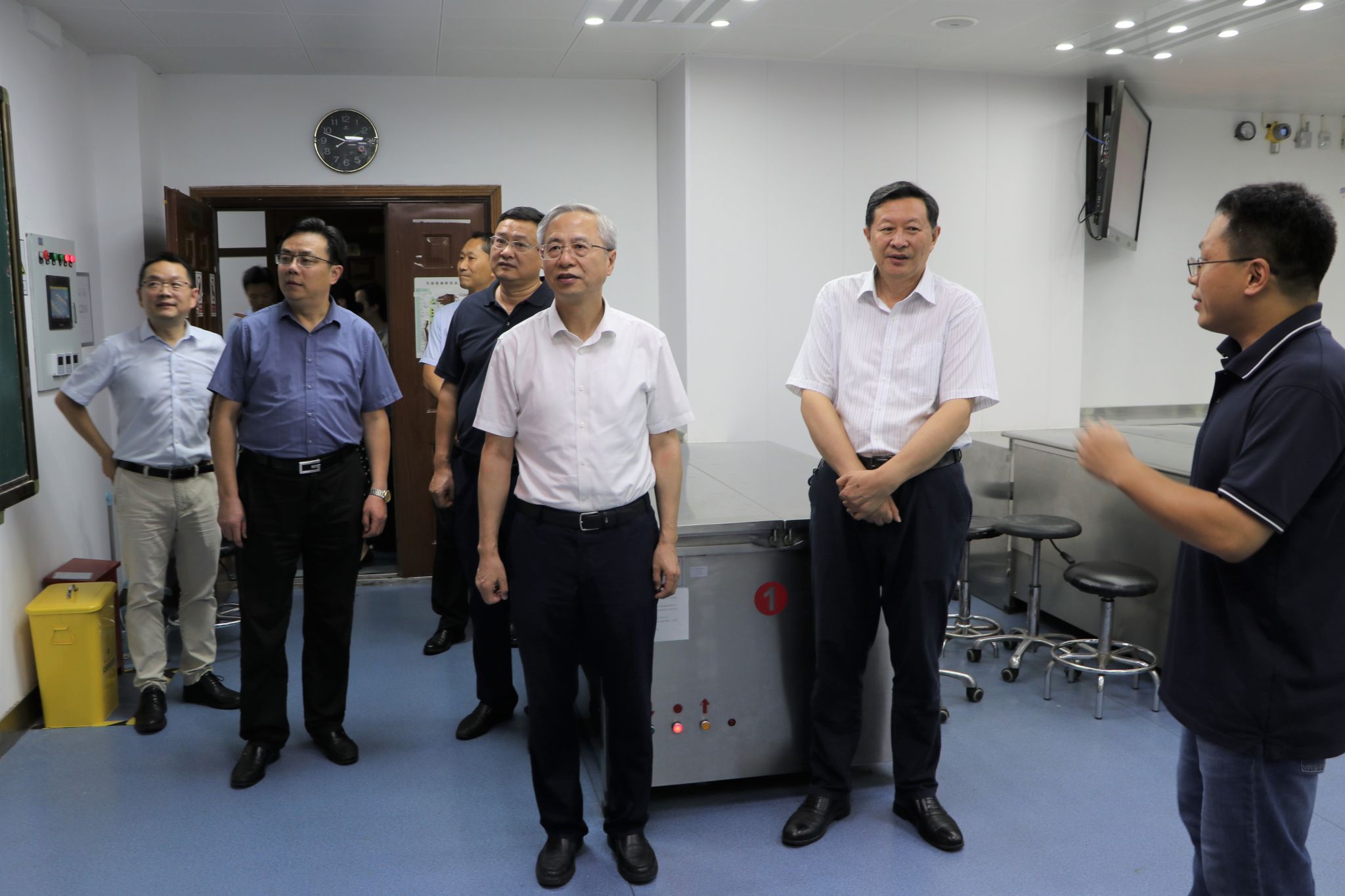 8月13日下午,江苏省农业农村厅二级巡视员傅兵、二级巡视员时勇,省农业农村厅兽医局、省动物卫生监督所、省动物疫病预防控制中心有关负责人来beat365官网调研指导工作。学院党委书记姜岩、副院长(主持工作)平继辉、党委副书记李云锋、副院长刘斐、副院长常广军、动物科技学院副院长李平华、基础兽医系主任杨晓静、预防兽医系主任周斌参与了调研工作。