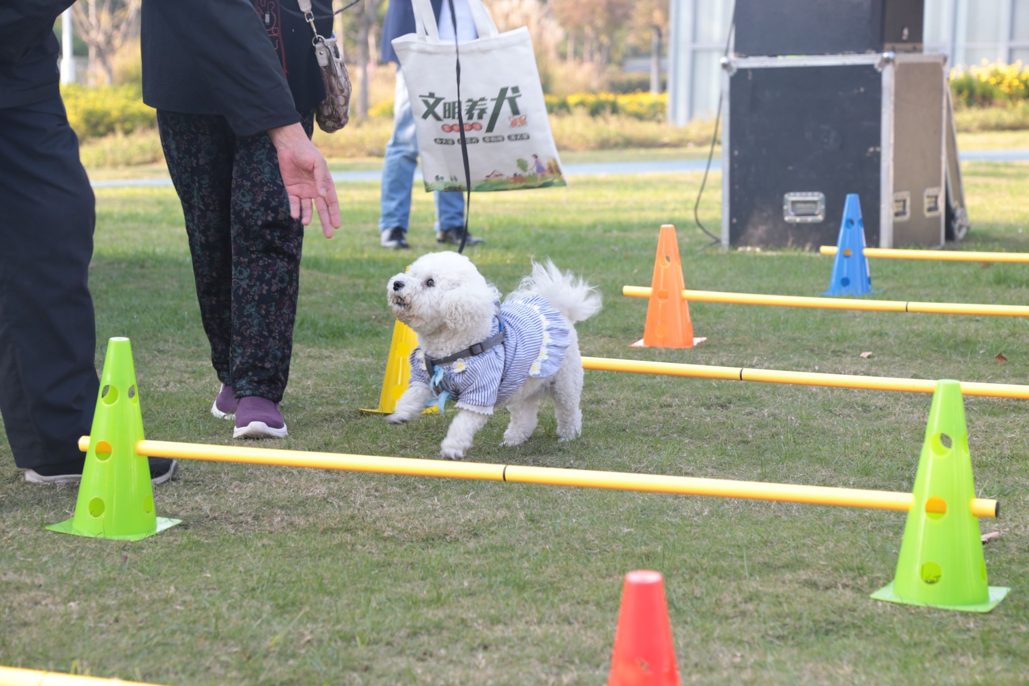 专业训犬师带领经过训练的犬只进行了精彩的示范表演,展示了文明养犬的具体行为,如正确使用牵引绳、及时清理宠物粪便等,鼓励大家牵绳遛狗,共同维护社区环境。