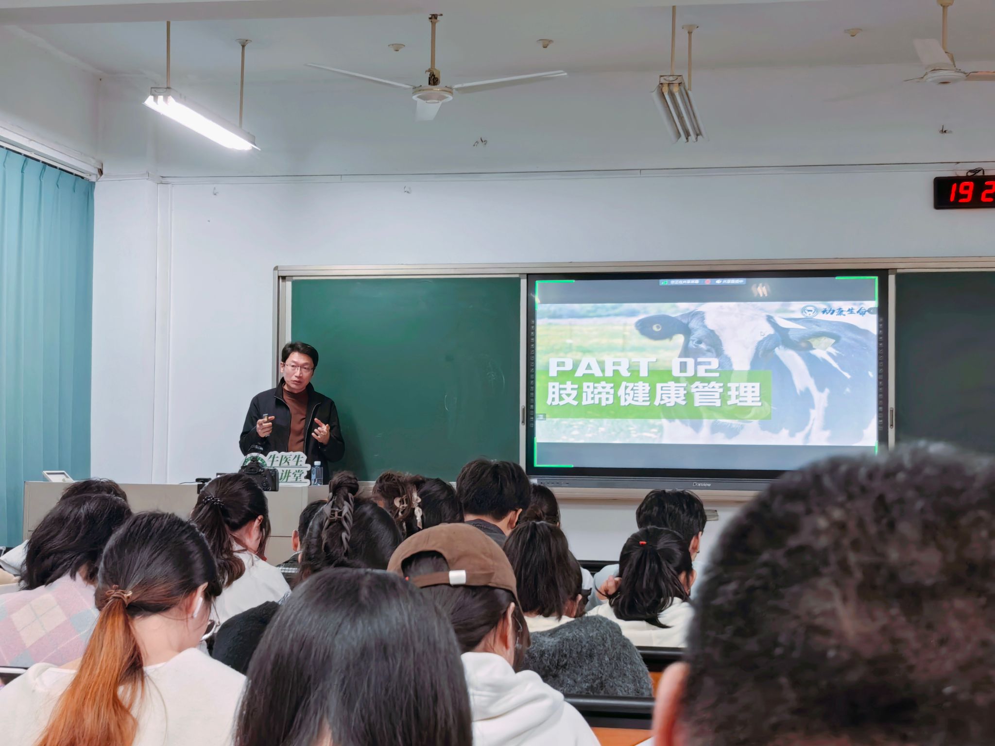 10月30日晚,beat365唯一官方网站2024年“牛医生大讲堂”专题培训第1期在卫岗校区 教学楼A204如期举行。本次培训主题为“牧场牛群健康管理”,由动康(南京)生命科学技术有限公司常务副总经理郭志刚主讲,吸引了近百名学生参加。