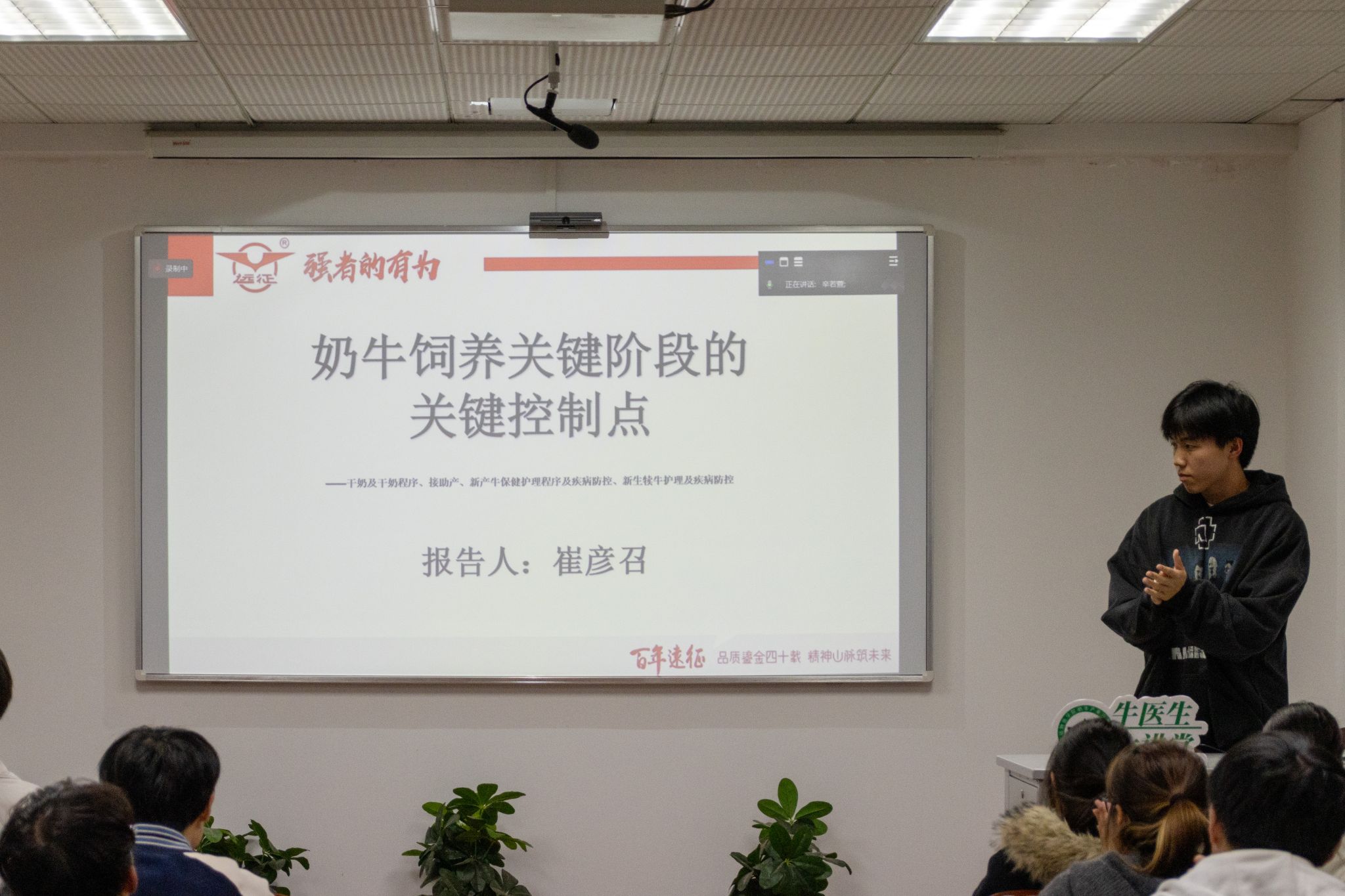 11月20日晚,beat365唯一官方网站2024年“牛医生大讲堂”专题培训第四期在卫岗校区逸夫楼3044如期举行。本次培训主题为“奶牛饲养关键阶段的关键控制点”,由河北远征药业有限公司集团技术部经理崔彦召主讲,吸引了近百名学生参加。