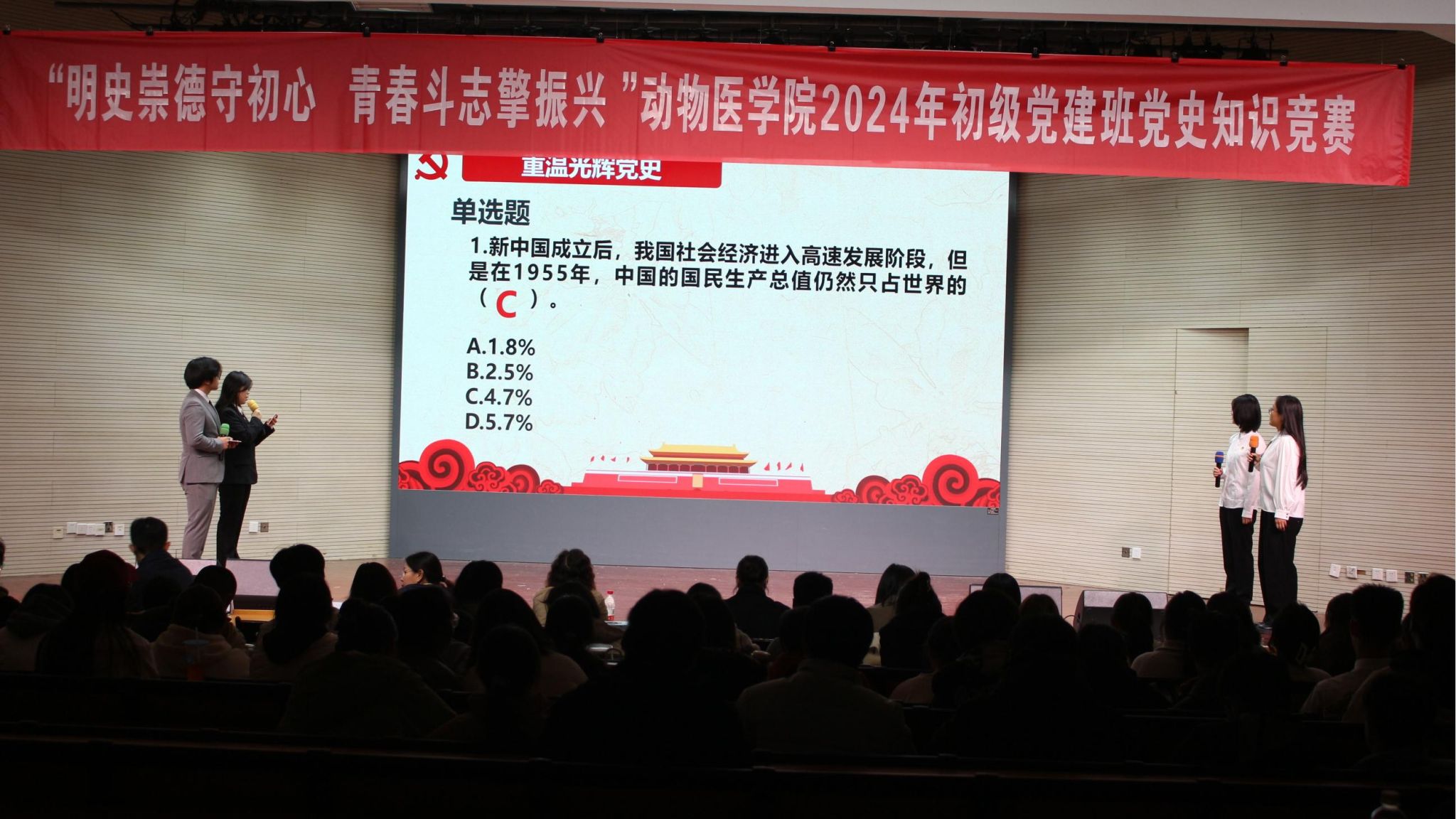 至此,“明史崇德守初心,青春斗志擎振兴”2024年党史知识竞赛圆满落幕。本次党史知识竞赛,旨在推动动医学子对中国共产党百年奋斗历程的深入学习和理解把握,号召广大青年从中汲取奋进的智慧和力量,努力学习、增长才干、提升本领,让青春在奋斗中绽放夺目光彩。