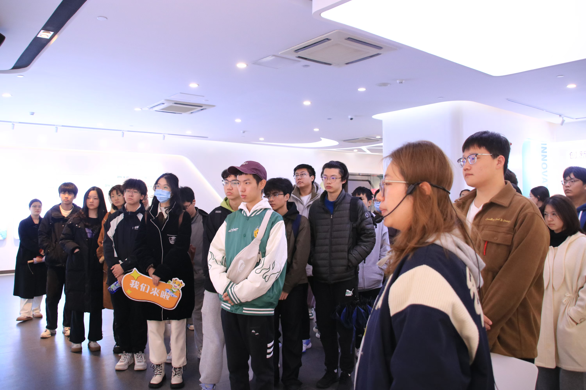 在总部大厅,江北新区生命健康安全环保部卞凯文向同学们详细介绍了生物医药谷的发展概况、区域规划、依托平台、创新药品、医疗器械等。通过沙盘模型,了解了生物医药谷的整体空间框架。