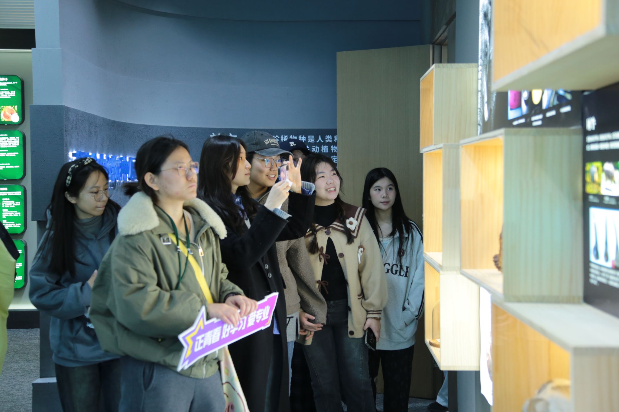 最后,同学们参观了濒危物种展示室,学习了解到海关查获的濒危物种制品、植物与昆虫标本。