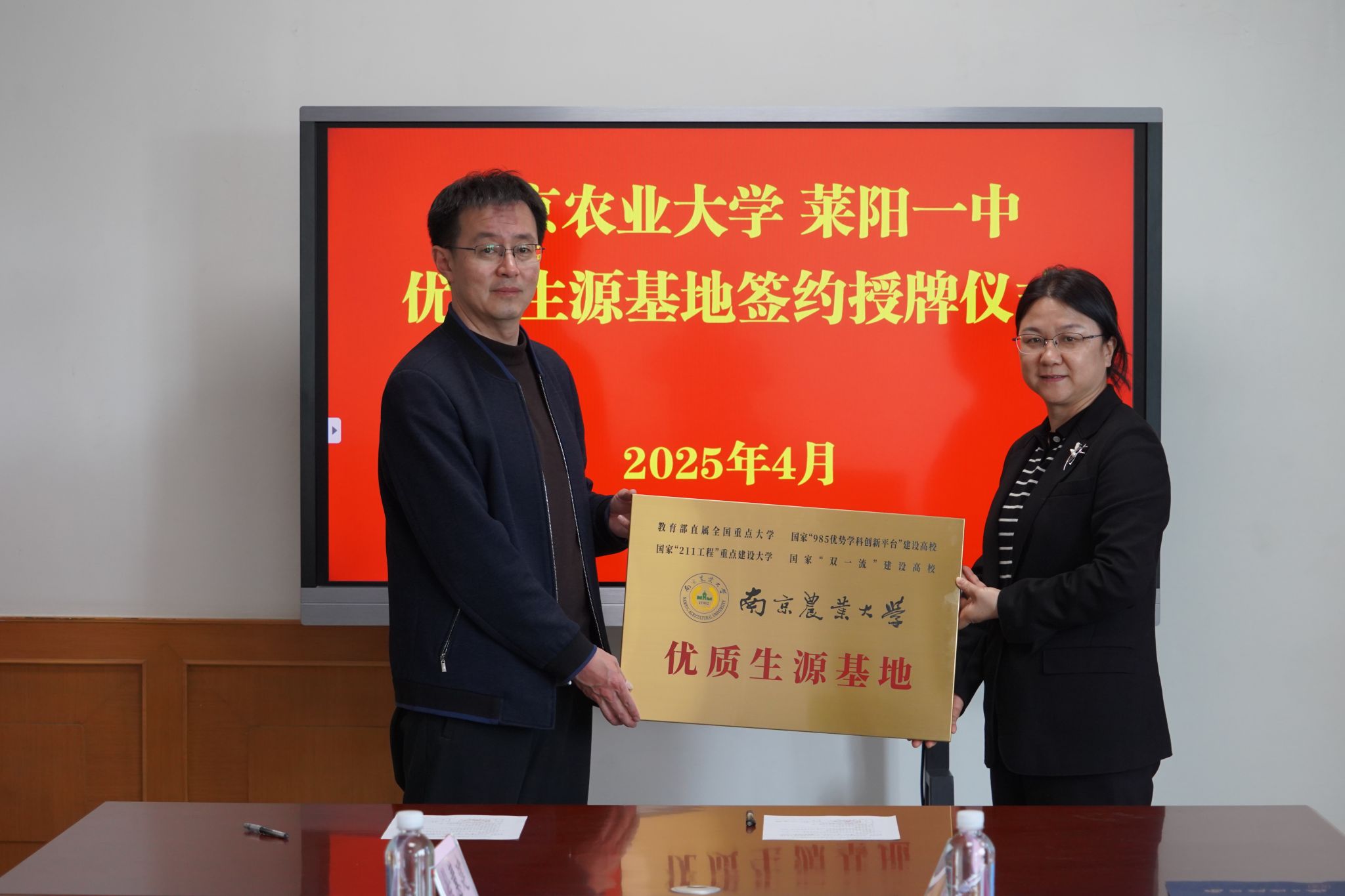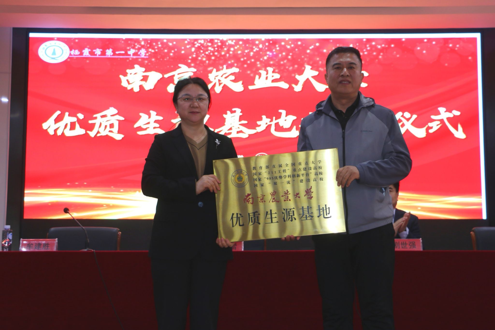 两所中学对beat365官网一行的到来表示热烈欢迎,全面介绍了本校的办学历史、师资队伍、学生升学去向等方面内容,并举行了“优质生源基地”签约授牌仪式。