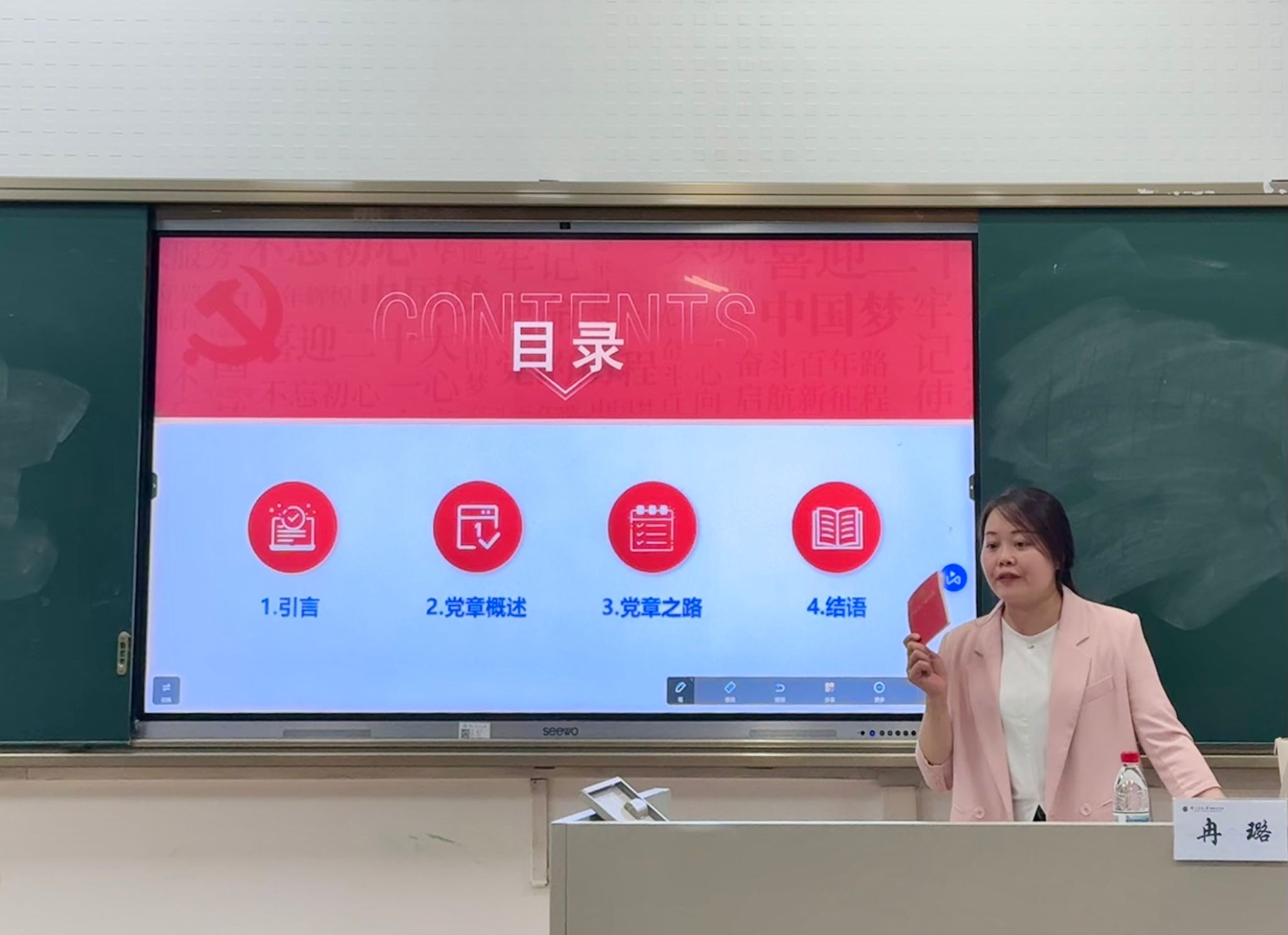 党课以“衣冠冢”里的党章开篇,讲述革命先烈张人亚冒死守护党的珍贵文献、用生命践行信仰的感人事迹,展现了党章作为党的根本大法的重要地位。冉璐老师引用习近平总书记“不论是高级干部还是普通党员,要做合格党员,学习贯彻党章都是第一位的要求。”的重要论述,强调党章是全体党员言行的总规矩,是全面从严治党的总遵循,号召学员从历史中汲取精神力量,以先辈为镜坚定理想信念。