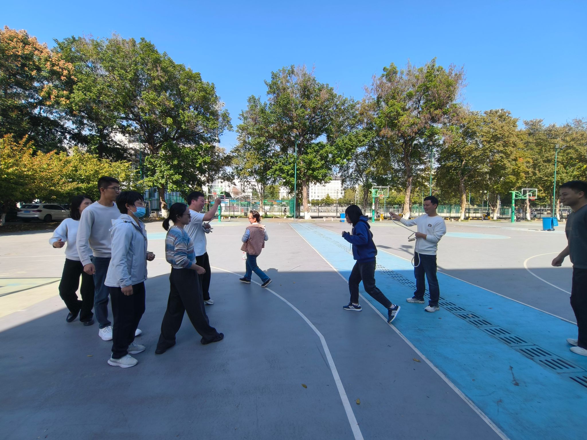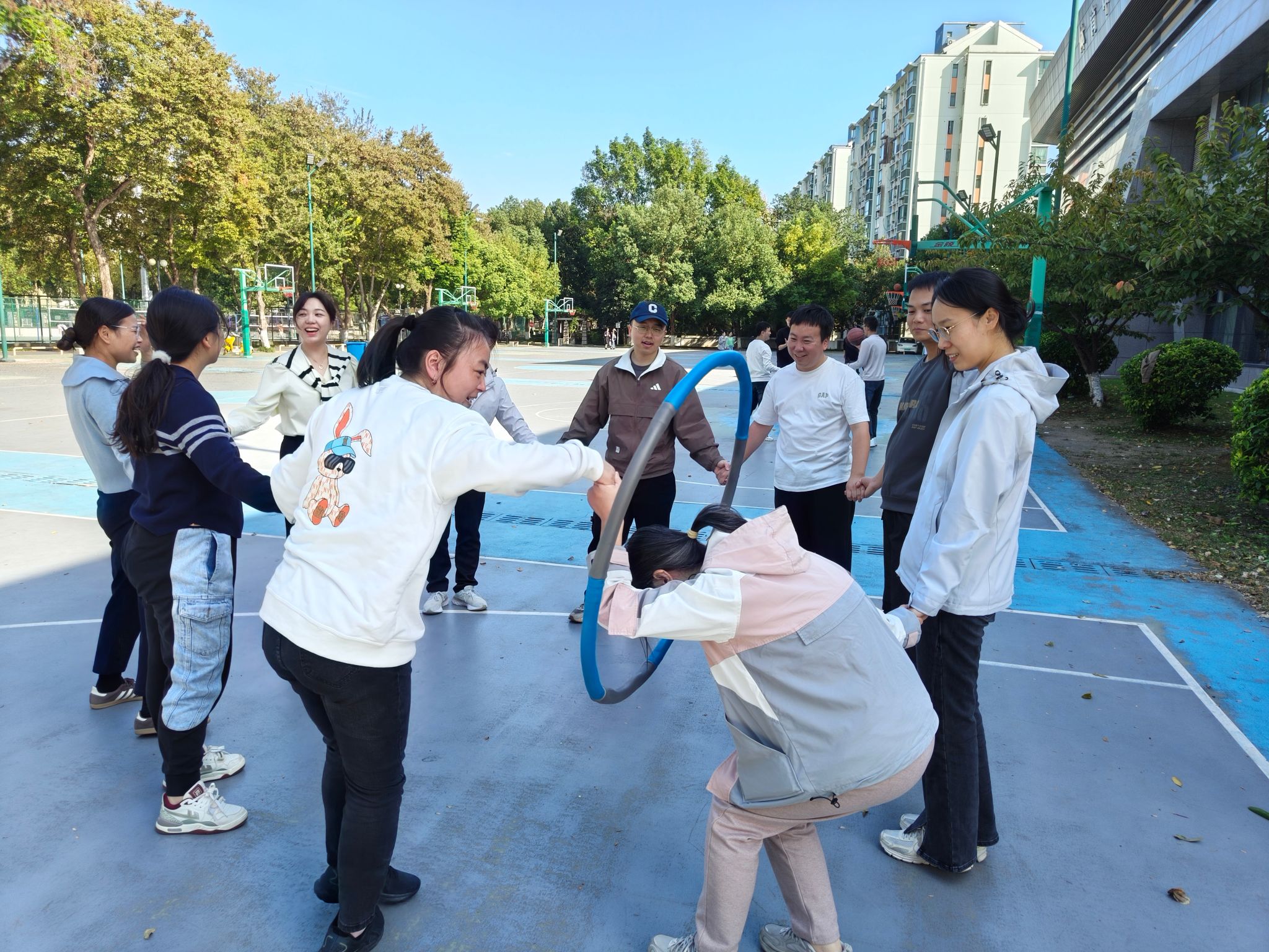 本次活动精心设置了夹球跑、钻呼啦圈、定点投篮和跳大绳四大趣味运动项目,既有考验个人协调性的项目,也有强调团队配合的环节,让老师们在运动中放松身心,在协作中增进情谊。