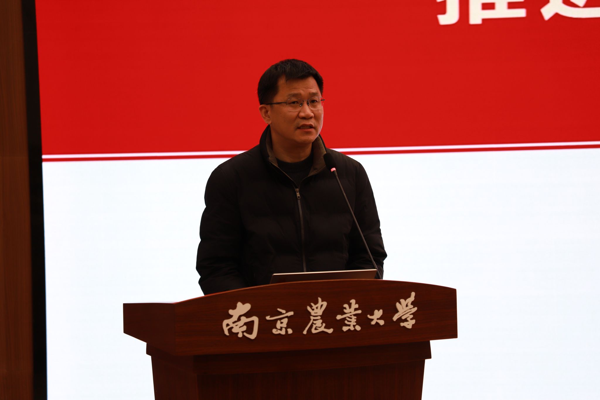 副院长(主持工作)苗晋锋在总结讲话中全面回顾学院2025年各项工作成效,并对照目标管理考核指标,对2026年度重点工作进行安排部署。他指出,2025年学院各项事业稳步推进、成效显著。立足2026年,全院教职工要锚定世界一流兽医学院建设目标,聚焦党建引领、人才培养、师资引育、学科发展、平台建设、科研创新、国际合作、社会服务等关键领域,依托P3实验室、动物大健康产业中心等平台,抢抓学科交叉、AI赋能等发展机遇,主动投身有组织科研攻关,着力服务“食安、生安、卫安”国家战略,推动学院各项事业再攀新高。
