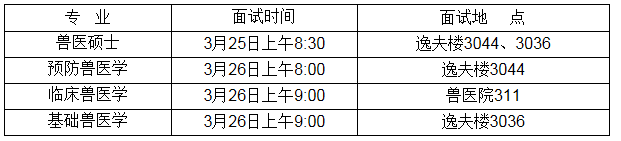 学术型硕士分数达到如下要求者可以进入复试:预防兽医学总分达到335分及以上,政治、英语成绩达到55分及以上;临床兽医学总分达到323分及以上,政治、英语成绩达到50分及以上;基础兽医学总分达到301分及以上,政治、英语成绩达到50分及以上。