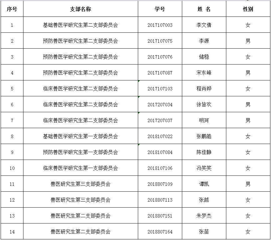 经个人申请、材料审核、支部答辩和讨论,现决定将如下研究生推优为积极分子,具体名单如下: