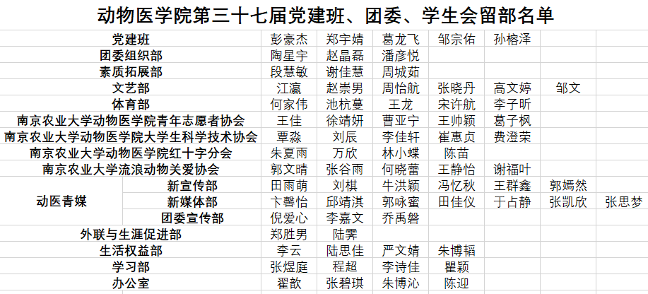 根据《关于beat365唯一官方网站第三十七届党建班、团委、学生会成员留部选拔的通知》,本着公平公正公开的原则,在经过推荐自荐、考核面试、综合考量之后,根据第三十七届党建班、团委、学生会各部门的实际情况,以及调整原则,最终拟定留部成员名单如下: