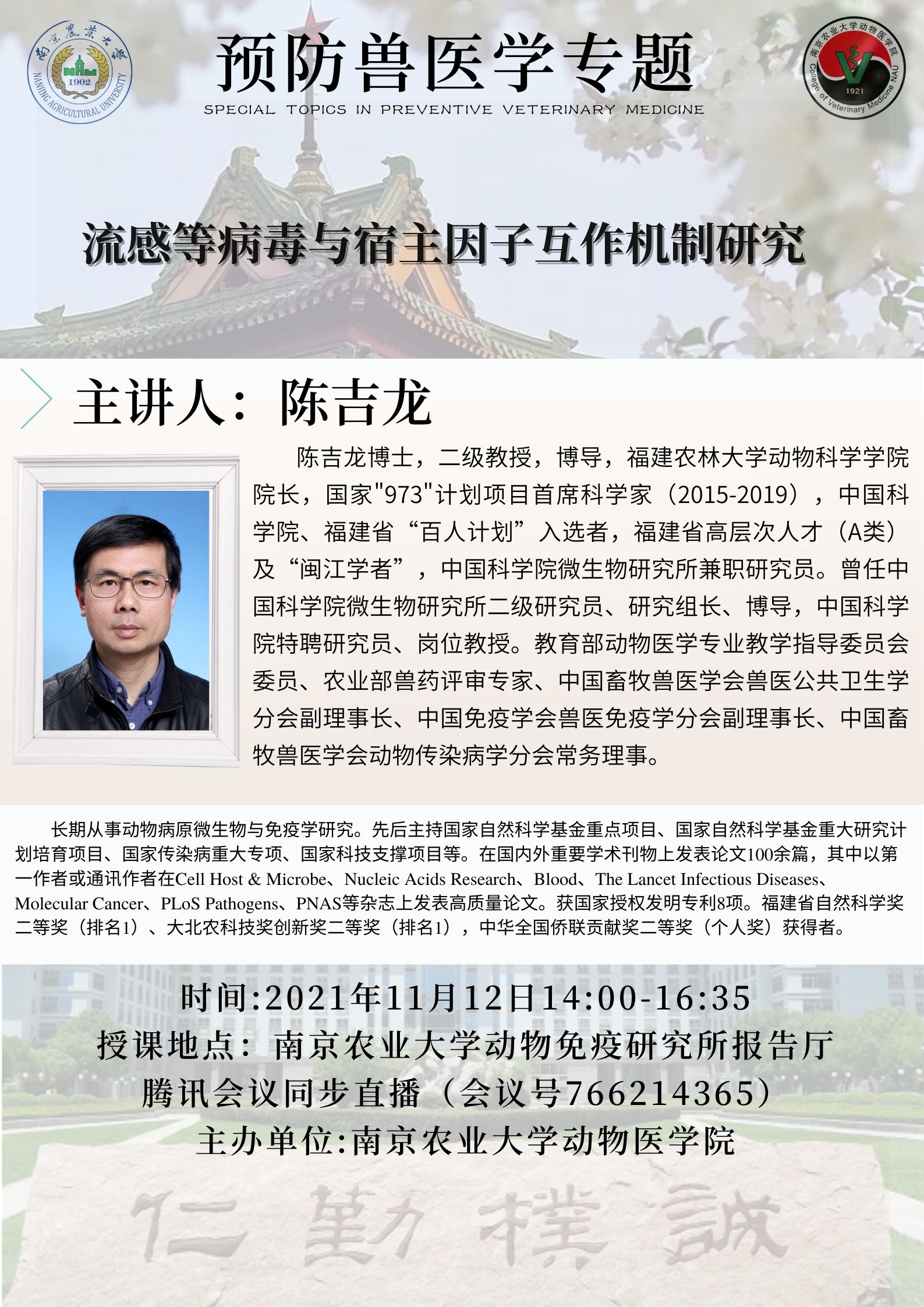 【研究生教育】《预防兽医学专题》-第八讲:流感等病毒与宿主因子互作机制研究(陈吉龙)