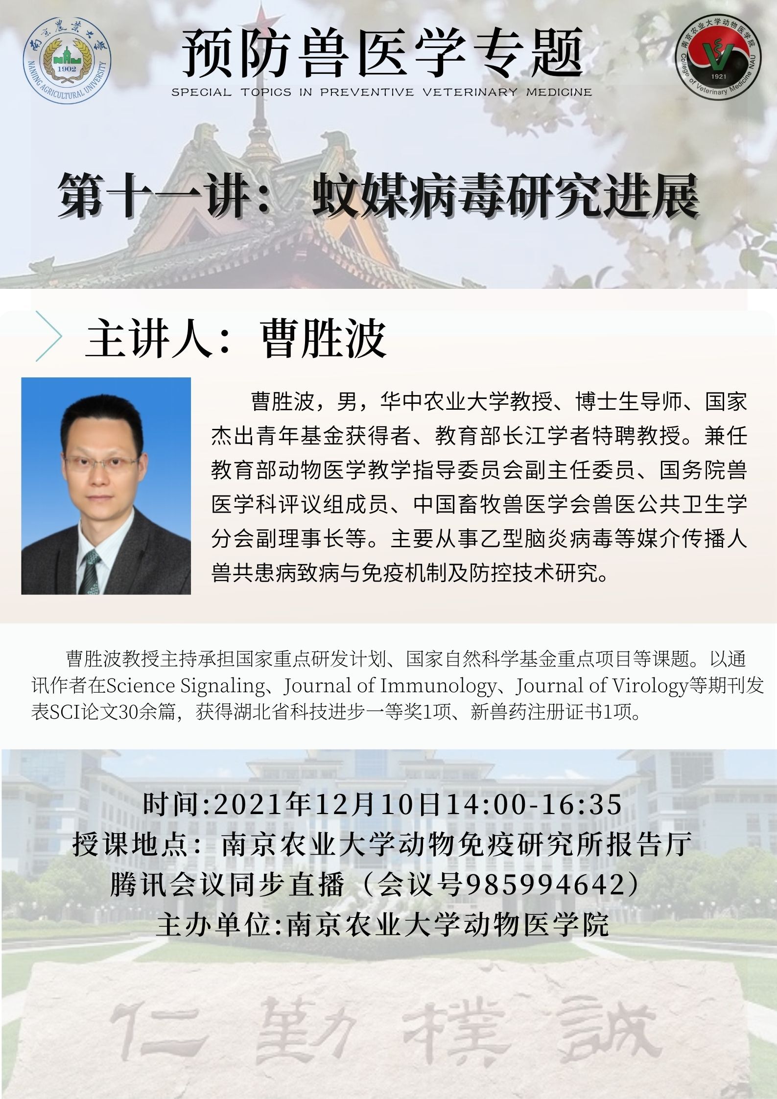 【研究生教育】《预防兽医学专题》-第十一讲:蚊媒病毒研究进展(曹胜波)