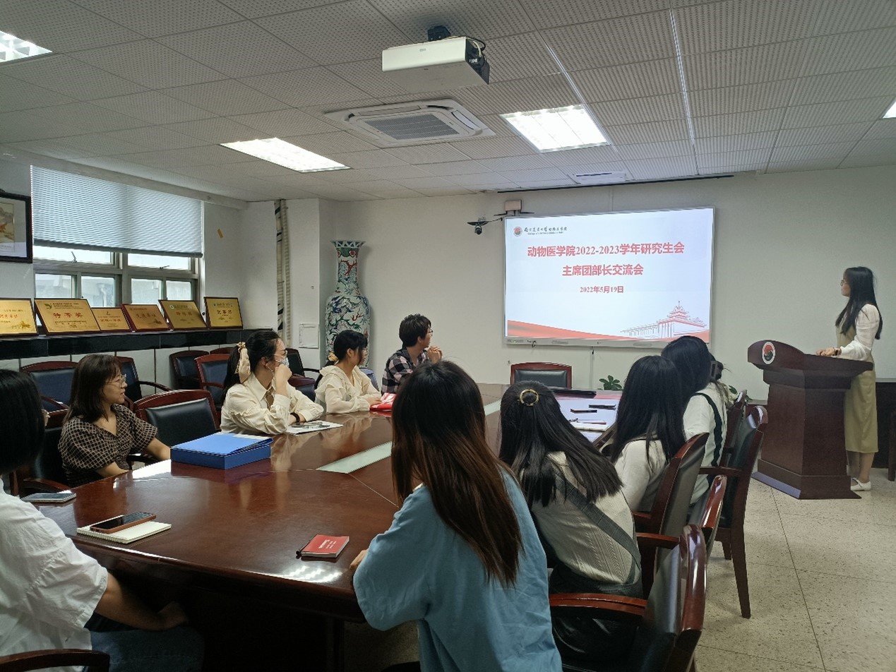 2022年5月19日下午17时,动医研分会举行了beat365唯一官方网站2022-2023学年研究生会主席团部长交流会。这是继新一轮的换届工作完成后的首次新老主席团部长的工作交接,交流会内容由各部门工作任务分工、研会内部考核考勤标准、每学期的校研会考评标准展开,让新一届的主席团部长更深入的了解研会工作,为新一届研会各项工作的展开打下基础。最后,本届部长与新一届部长进行更详细的面对面交流以及材料的交接,将动医研会严谨、高效的工作精神以及服务精神传承下去。
