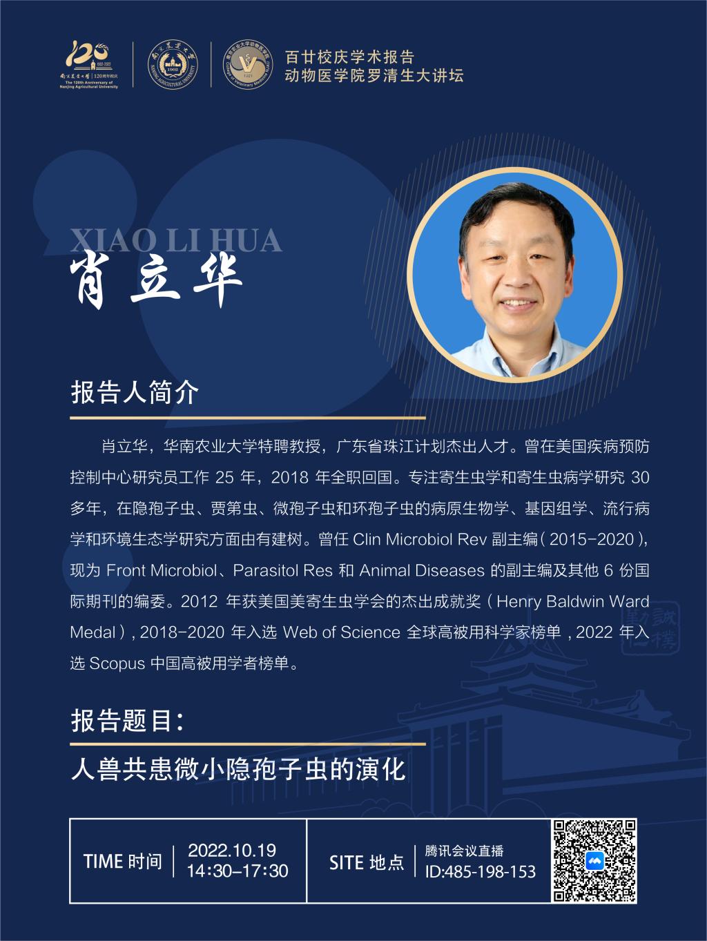【百廿校庆学术报告】beat365唯一官方网站罗清生大讲坛-人兽共患微小隐孢子虫的演化