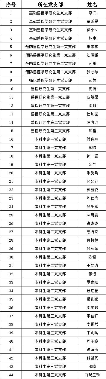 根据beat365唯一官方网站党员发展工作安排,经由学生自愿申请,各团支部推荐,党支部讨论,结合初级党建班期间个人表现、结业考试成绩等综合情况,经学院党委审核,接收高兴等44名本科生和研究生成为入党积极分子,现将名单公示如下: