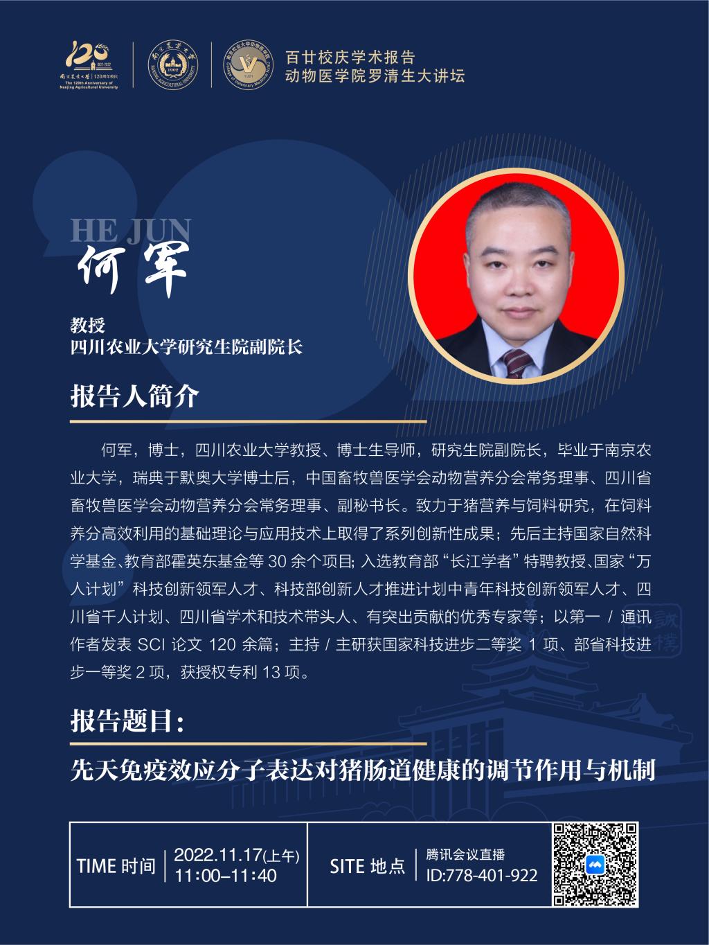 【百廿校庆学术报告】beat365唯一官方网站罗清生大讲坛-先天免疫效应分子表达对猪肠道健康的调节作用与机制
