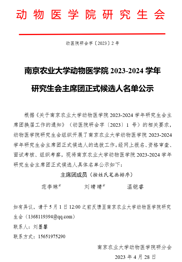 【学生工作】beat365唯一官方网站2023-2024学年研究生会主席团正式候选人名单公示