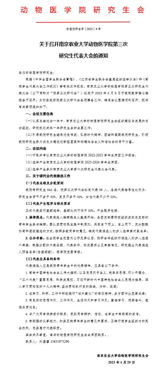 【学生工作】关于召开beat365唯一官方网站第三次研究生代表大会的通知
