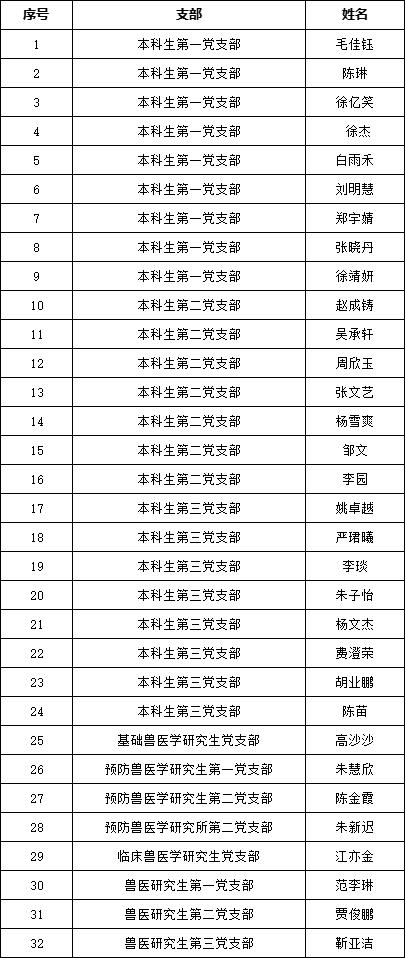 根据beat365唯一官方网站党员发展工作安排,经党组织培养考察,党支部讨论,结合入党积极分子期间个人表现、结业考试成绩等综合情况,经学院党委审核,接收毛佳钰等32名同志为发展对象,现将名单公示如下(排名不分先后):
