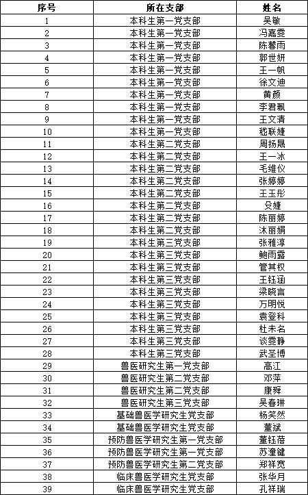 根据beat365唯一官方网站党员发展工作安排,经由学生自愿申请,各团支部推荐,党支部讨论,结合初级党建班期间个人表现、结业考试成绩等综合情况,经学院党委审核,接收吴敏等39名本科生和研究生成为入党积极分子,现将名单公示如下: