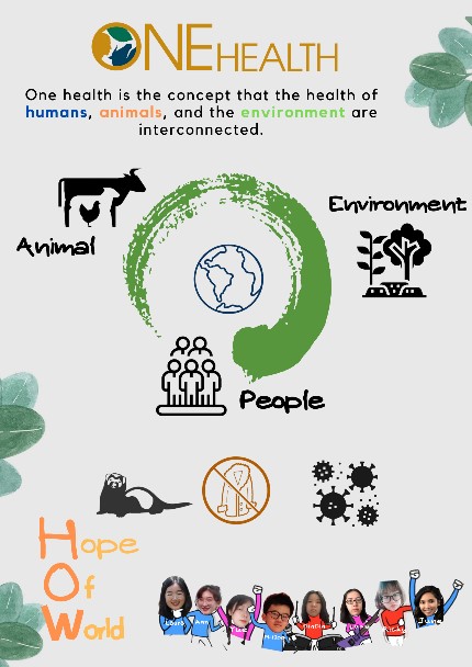 首先,我们在第一天学习了One Health的概念后,我们迎来了第一个任务,就是在三天内共同完成一张海报,要包括我们对One Health的理解与介绍以及对我们小组的介绍,并且像大家进行poster presentation。首先我们与June通过ZOOM进行了相互了解与介绍,共同讨论了我们对于One Health的理解,并且为我们的小组取了个名字“HOW——Hope Of World ”。意思是我们认为One Health是一种解决问题的方法,并且是解决问题的希望,所以我们取名为How。然后我们围绕着人类,动物,环境对One Health进行了介绍,并且为了更好地表达我们的想法,我们举了皮草与病毒的例子进行了解释。首先貂作为皮草动物能传播人畜共患病,包括鼠疫,犬瘟热,水貂病毒性脑炎等,并且有很大的可能性会助长COVID19的传播,并且人们通常以焚烧的方式处理动物尸体,而焚烧产生的烟气含有粉尘、有毒气体,二噁英类物质及重金属物质等。我们通过这样一个例子说明了人与动物与环境同一健康的关系。在进行poster presentation后老师们对我们组的展示非常感兴趣,并且还进一步就皮草的问题与我们进行了交流。在完成了本次poster后,我们对互相的性格能力有了更深入的了解,知道了每个人擅长的部分。