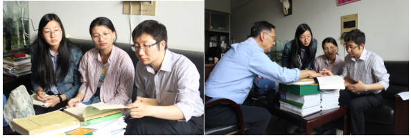 左图 陆老师给熊书记以及学生参阅书籍