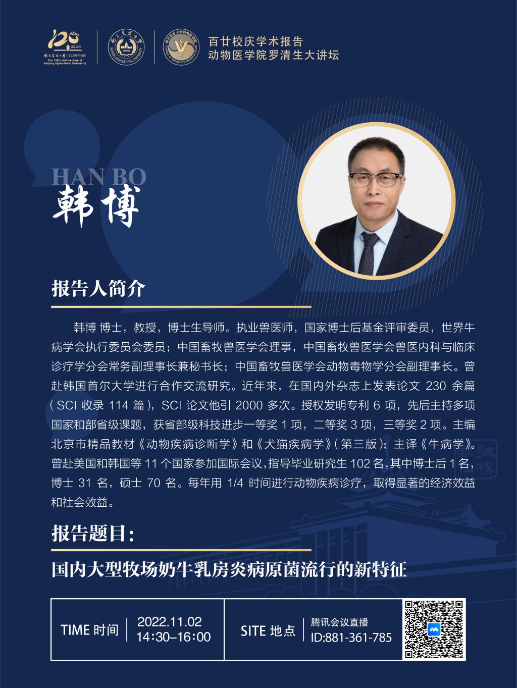 【百廿校庆学术报告】beat365唯一官方网站罗清生大讲坛-国内大型牧场奶牛乳房炎病原菌流行的新特征