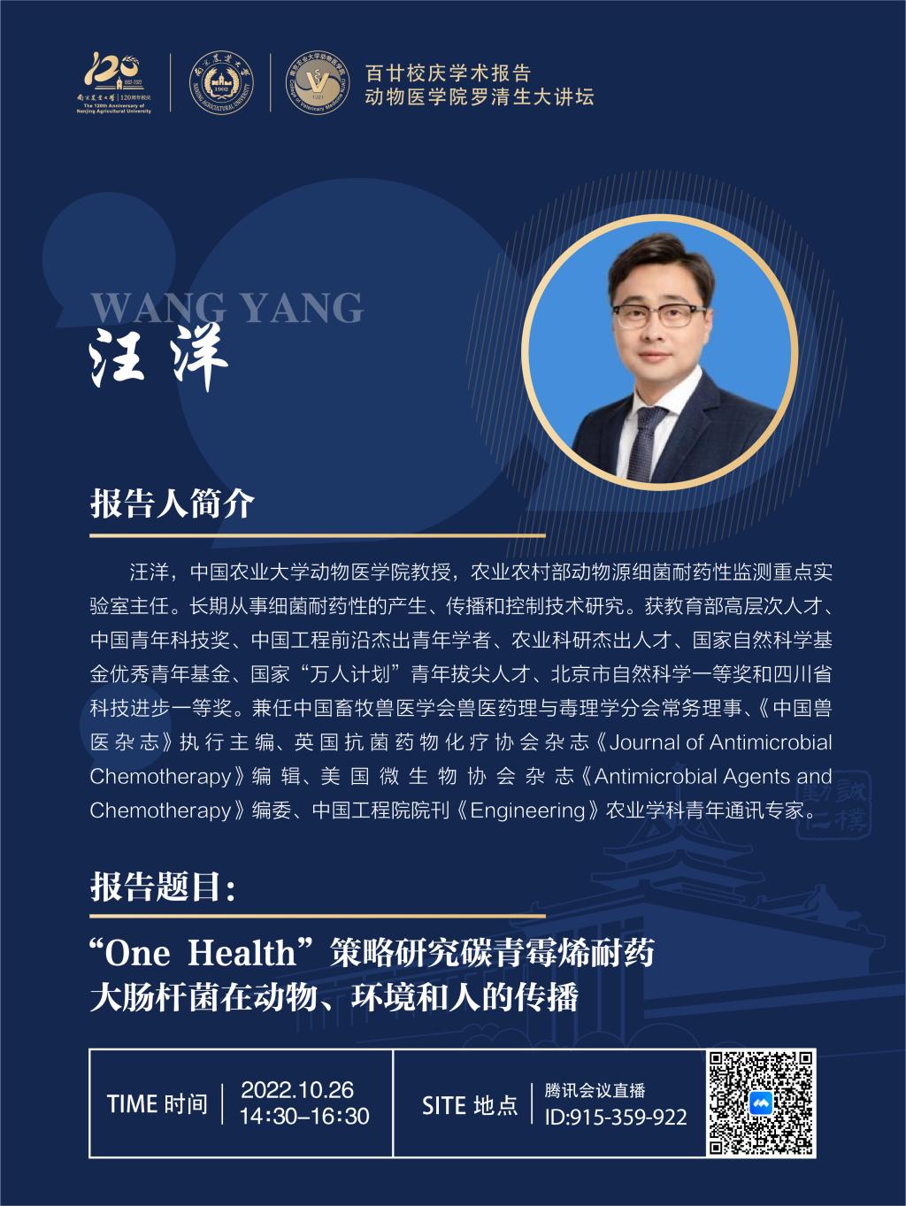 【百廿校庆学术报告】beat365唯一官方网站罗清生大讲坛-“One Health”策略研究碳青霉烯耐药大肠杆菌在动物、环境和人的传播