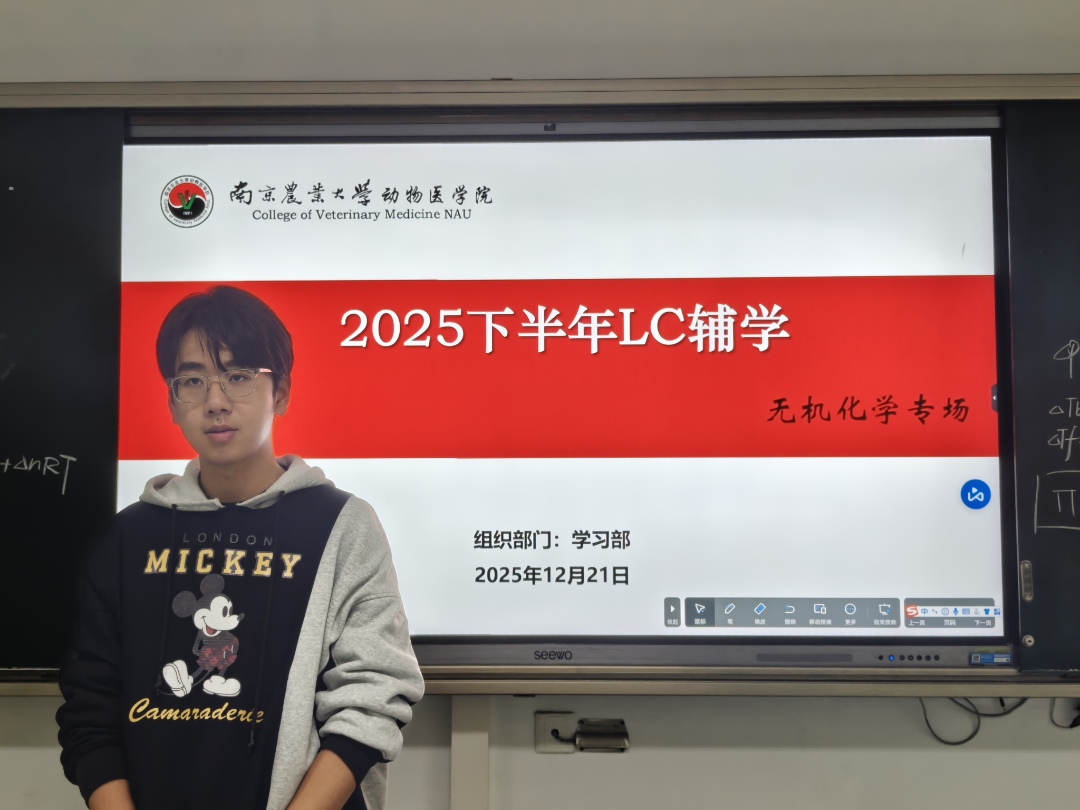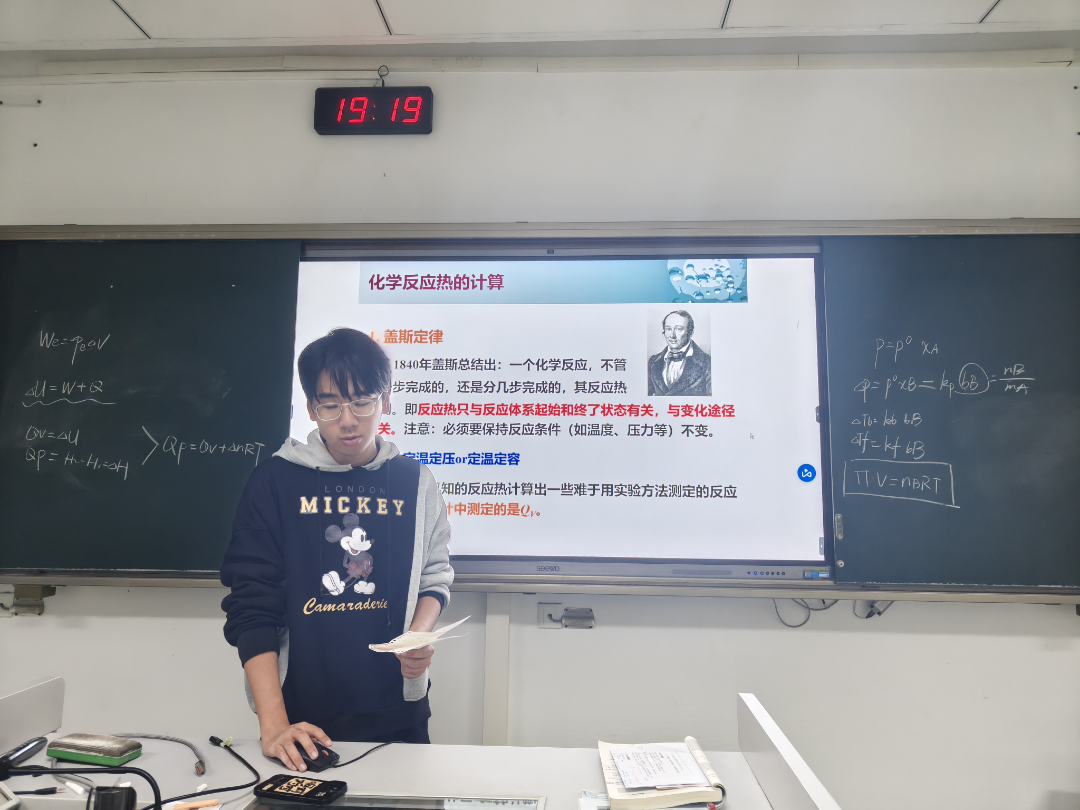 杨睿霖学长围绕化学热力学、物质结构、酸碱滴定与配位滴定四大模块开展辅导,重点讲解胶体结构、化学反应能量计算、溶液酸度计算等高频考点。他以知识点梳理搭配典型习题精讲的方式,帮助同学们夯实基础、理清解题思路,明确考试重难点。同时,他还分享了实用的学习方法、复习规划与应试技巧,为大家备战期末考试提供了有力指导。