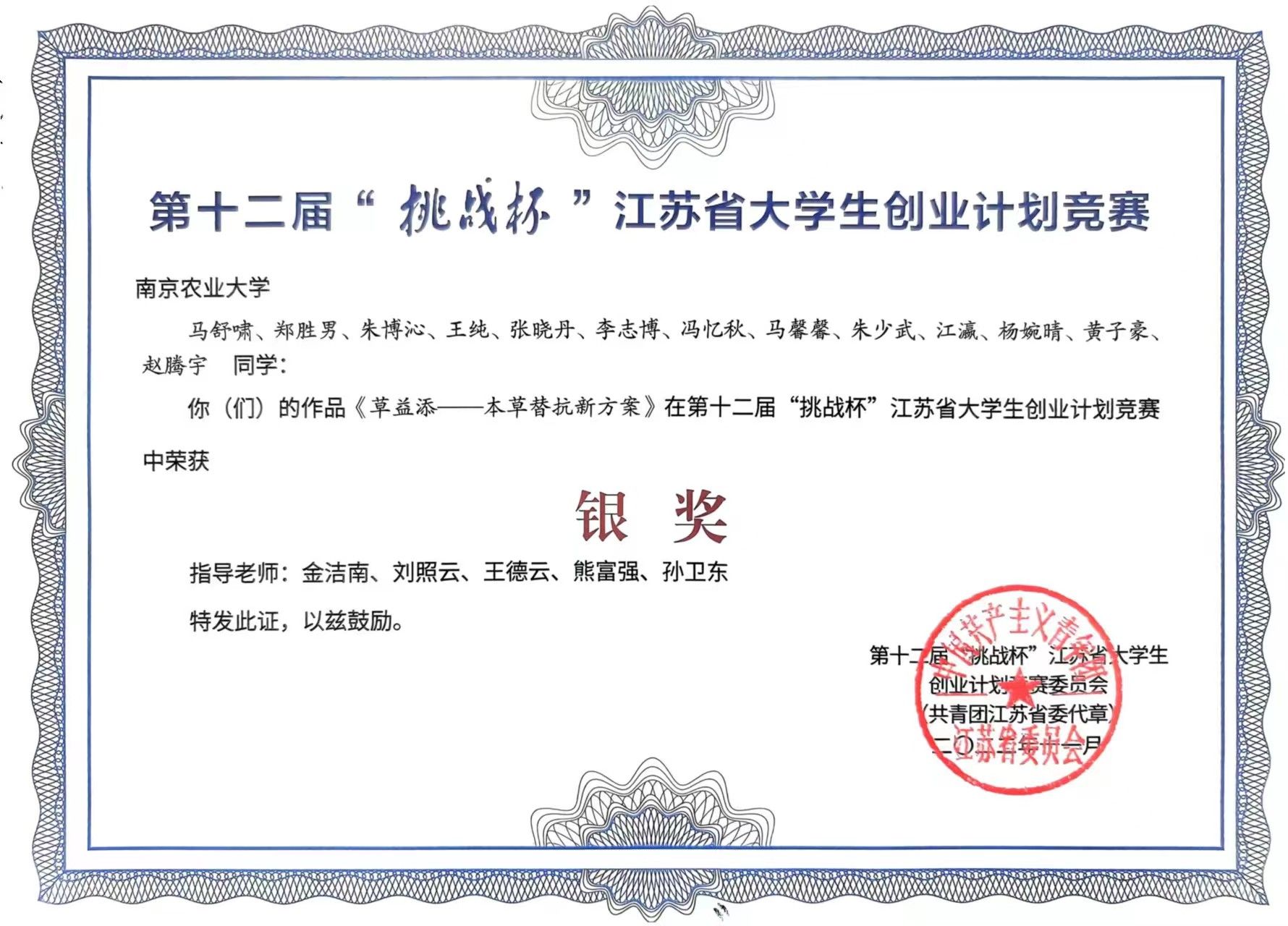 2022年第十二届“挑战杯”江苏省大学生创业计划竞赛银奖