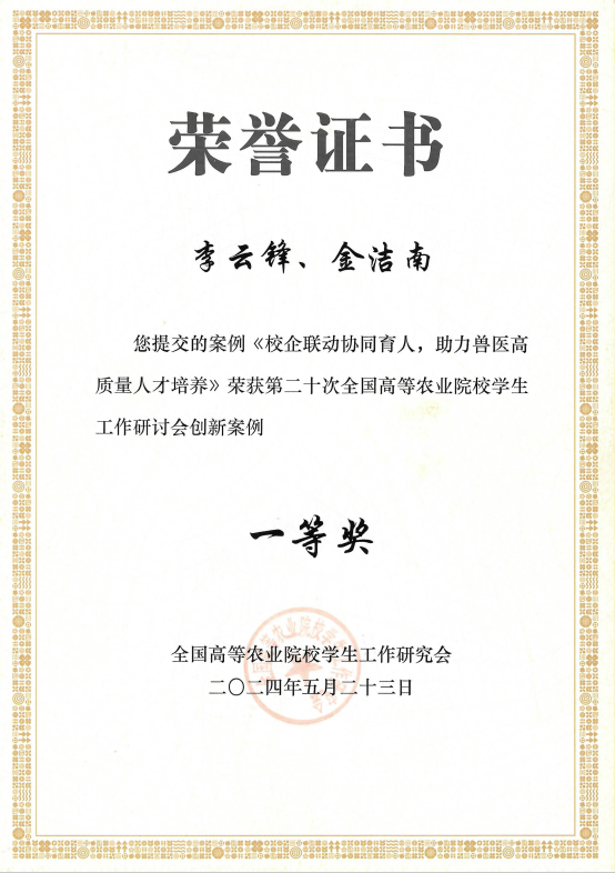 2024年李云锋、金洁南论文获第二十次全国高等农业院校学生工作研讨会优秀案例一等奖