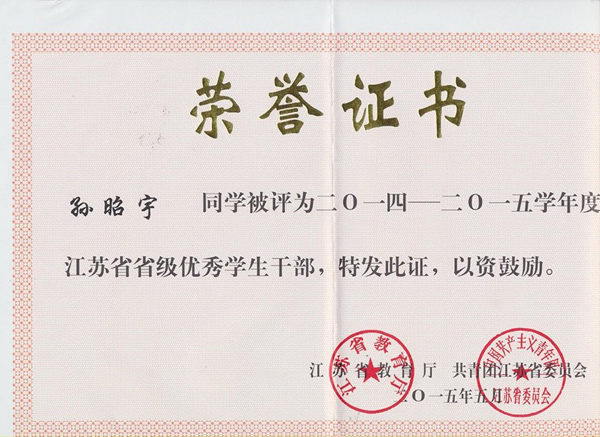 孙昭宇省级优秀学生干部