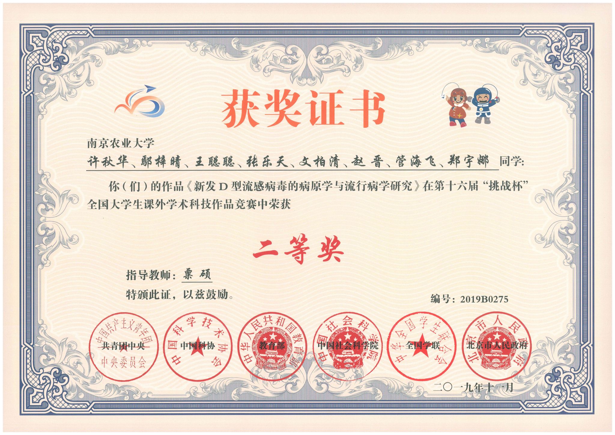 2019年第十六届“挑战杯”全国大学生课外学术科技作品竞赛二等奖