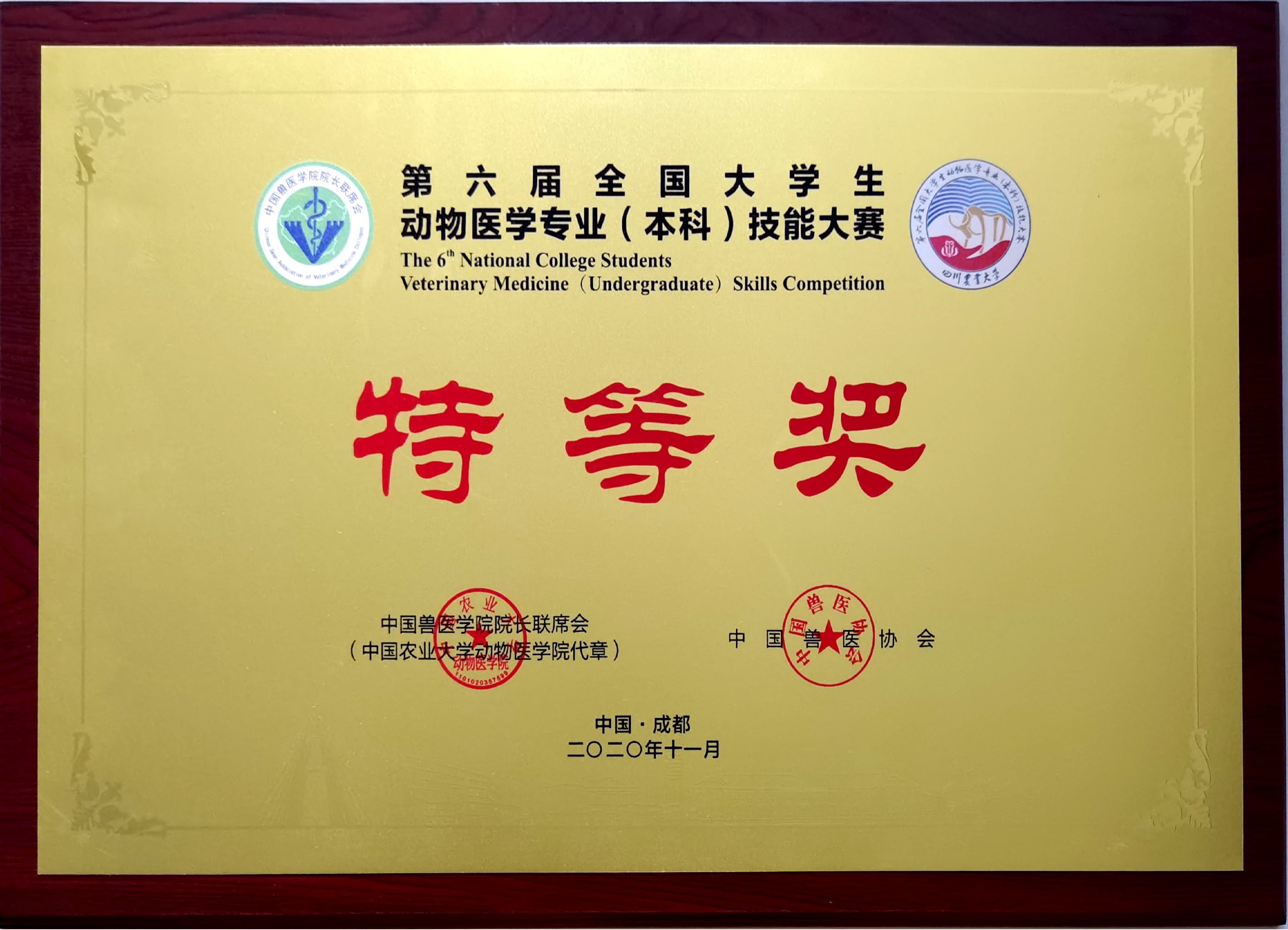 2020年第六届全国大学生动物医学专业(本科)技能大赛特等奖