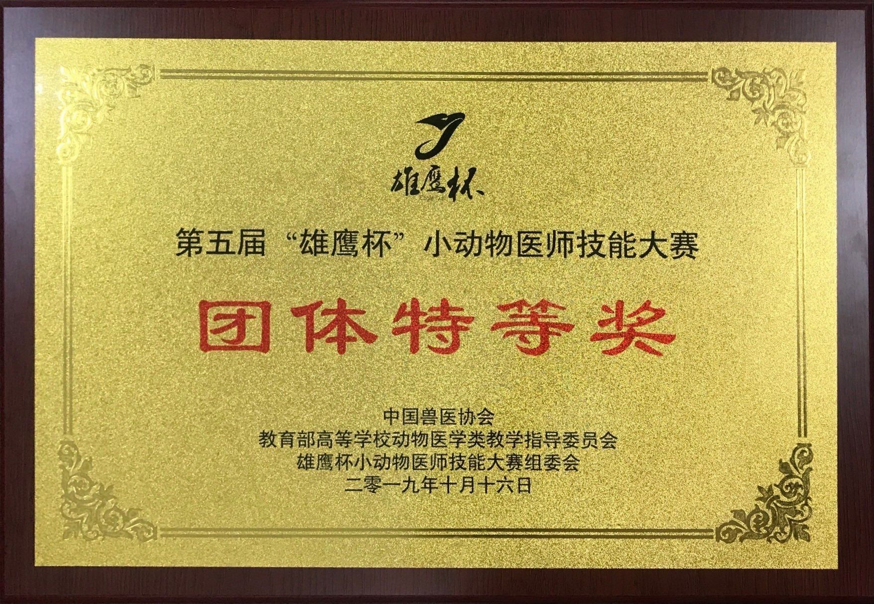 2019年第五届“雄鹰杯”小动物医师技能大赛团体特等奖