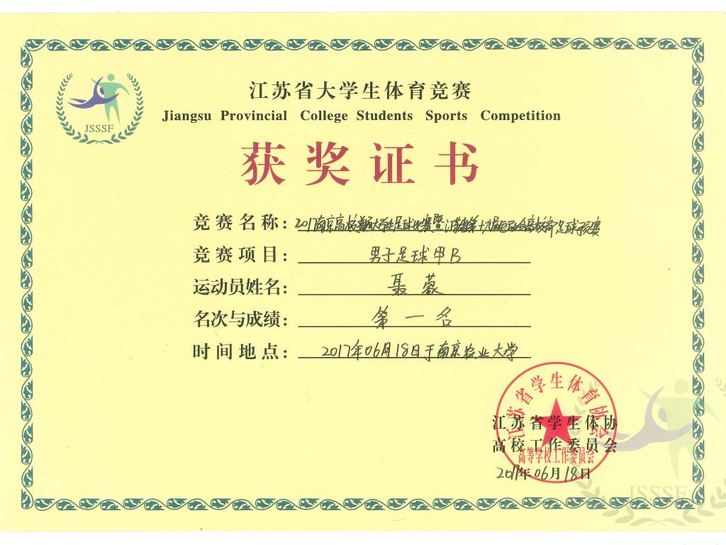 聂蒙获省级男子足球赛第一名