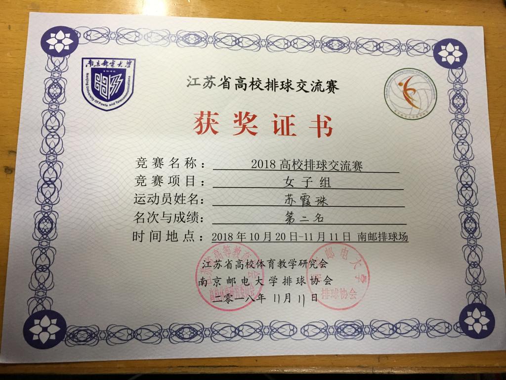 苏霞珠获2018高校排球交流赛(女子组)第二名