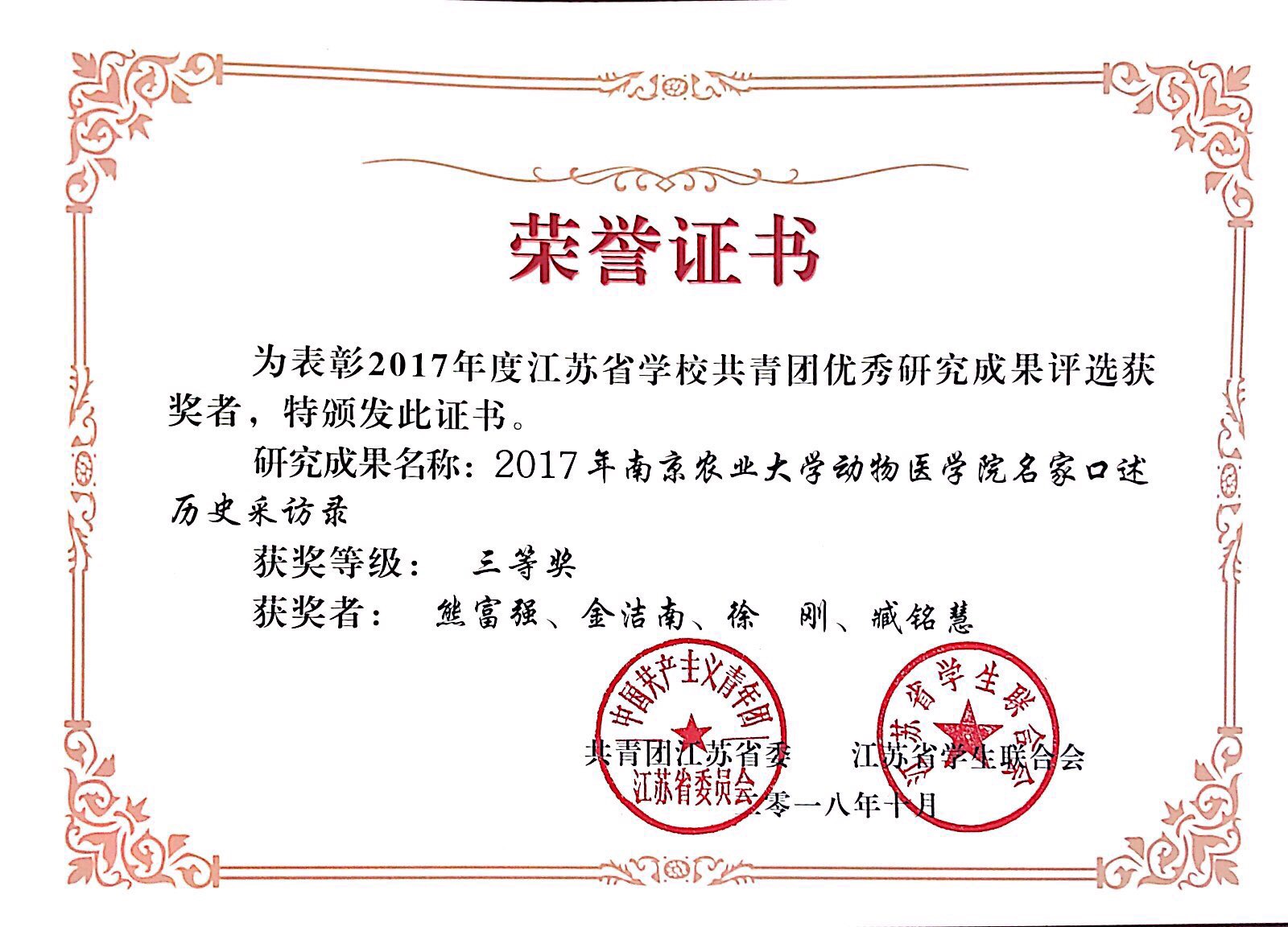 《2017年beat365唯一官方网站名家口述历史采访录》获江苏省学校共青团优秀研究成果三等奖